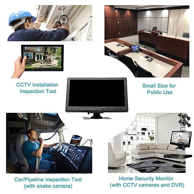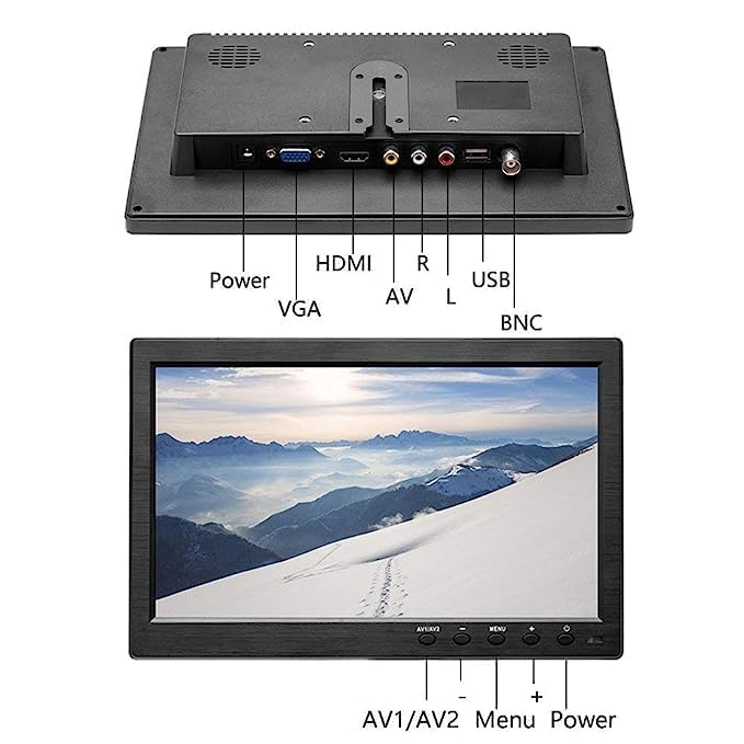 10.1 Inch TFT Color LCD Monitor Screen Display for CCTV, Rear View Vehicle, Photography with AV HDMI VGA DC Input, Black 10HDLCD