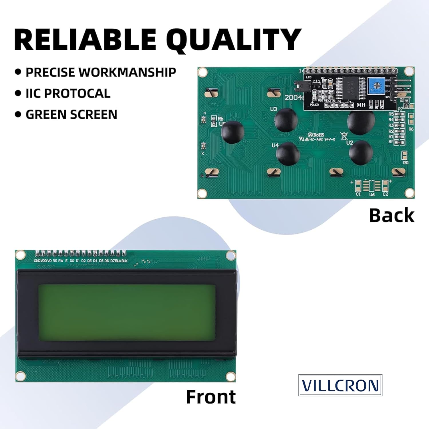 The Villcron 20×4 Character LCD Display Module (2004) is a reliable alphanumeric display designed for embedded systems, educational kits, and industrial electronics. With 20 characters per line and 4 lines, it allows clear presentation of data, messages, menus, and system status. This module features a yellow-green backlight with black characters, ensuring high visibility and contrast. It uses a standard parallel interface and is HD44780 compatible, making it easy to program using commonly available libraries. Perfect for students, hobbyists, engineers, and repair technicians, this display is widely used in Arduino, 8051, AVR, PIC, and Raspberry Pi projects.