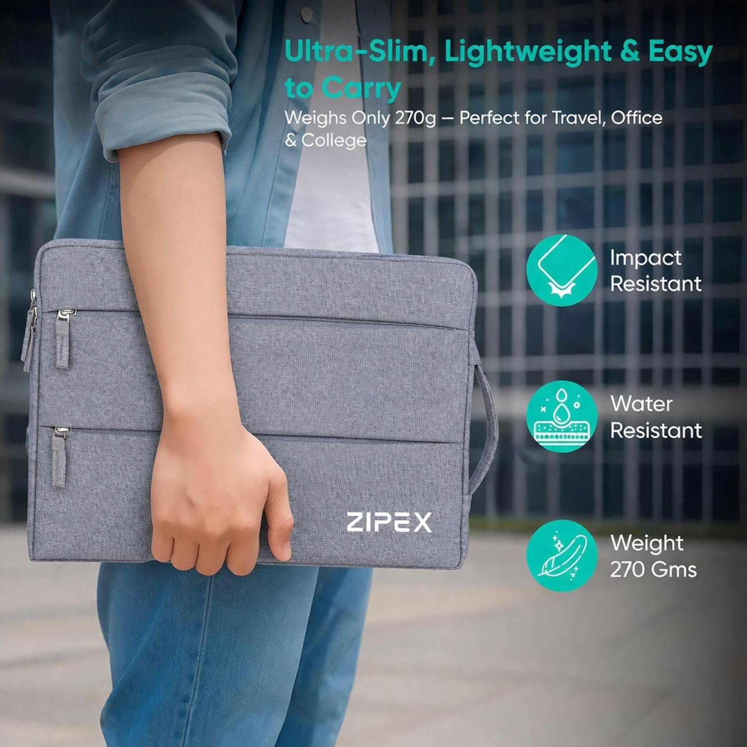 Water-resistant, shockproof ZIPEX sleeve designed to keep your MacBook, Dell, HP, Lenovo & ASUS laptops safe and your essentials perfectly organized for work, travel, and daily use.