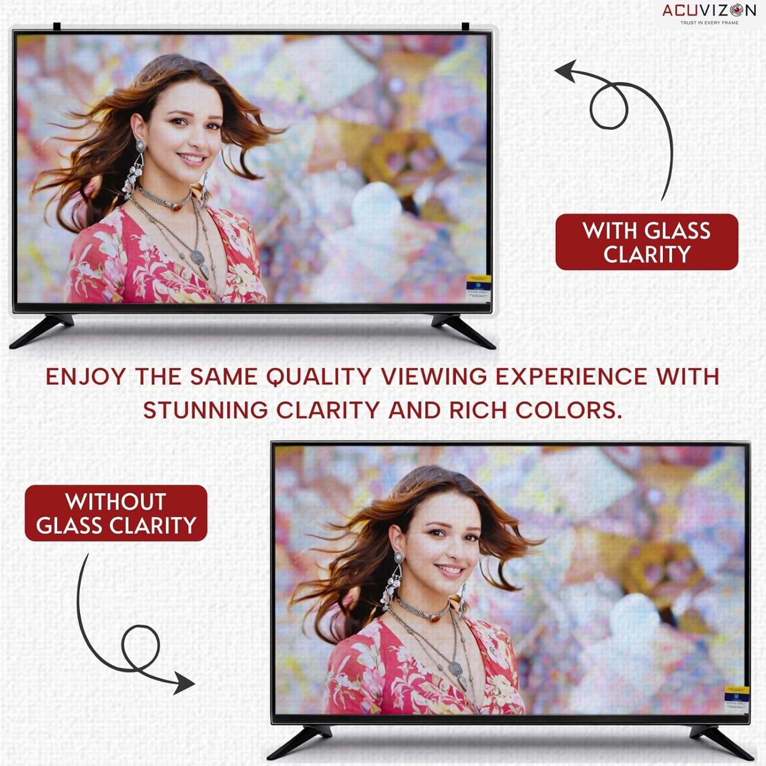Each ACUVIZON tempered glass screen guard is precision-cut to match specific television sizes from 32 inch to 75 inch, ensuring complete coverage without gaps or overhangs. Compatible with all TV types including LED TV screen protector, LCD TV screen protector, OLED TV protector, QLED TV protector, Smart TV screen guard, and Plasma TV protector needs. The rounded edges provide a seamless, premium look that blends naturally with your TV’s design.