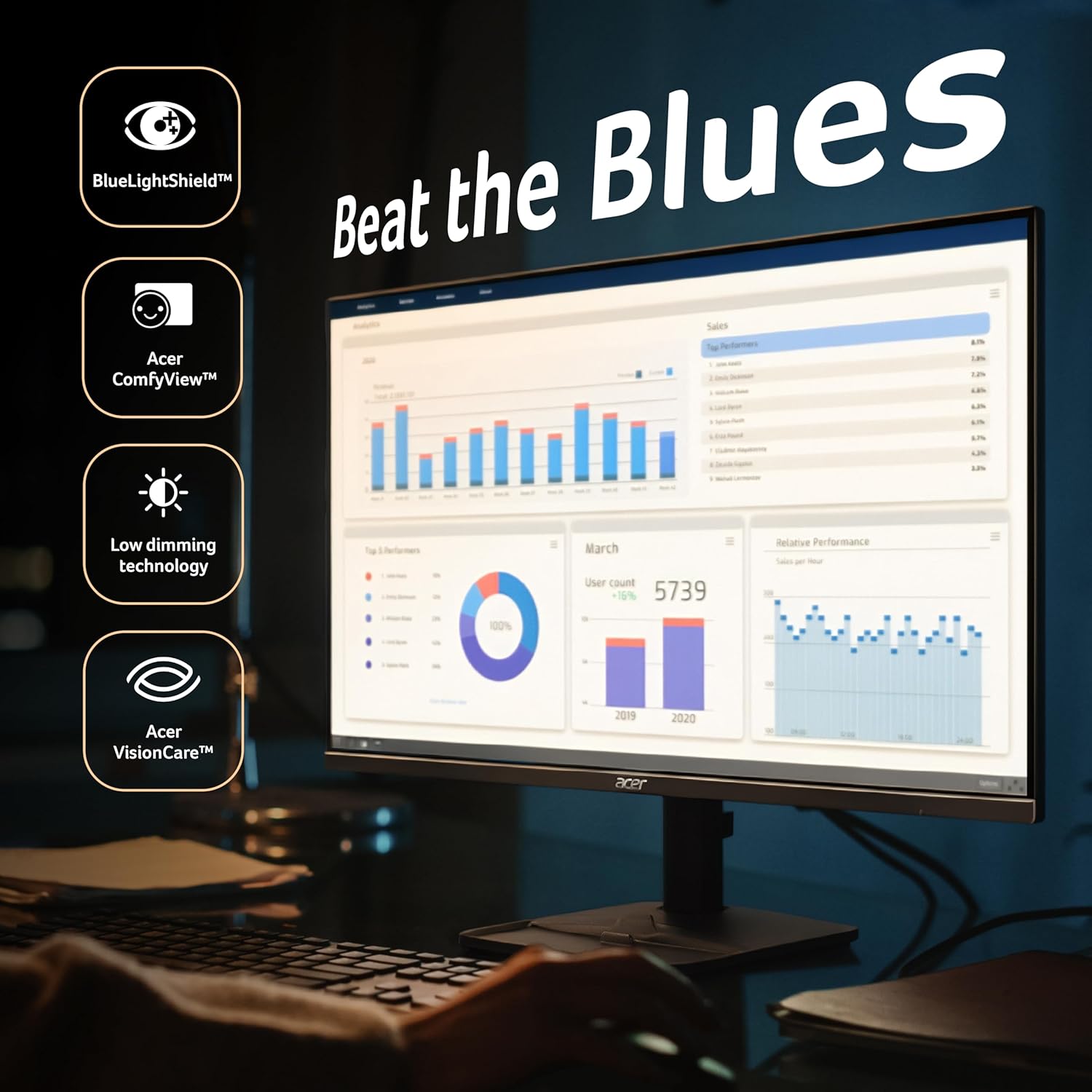 【👁️ Acer VisionCare Eye Comfort】Built with Flicker-less, BlueLightShield, Low-Dimming, and ComfyView technologies to help reduce eye strain and provide comfortable viewing during long work or gaming sessions.