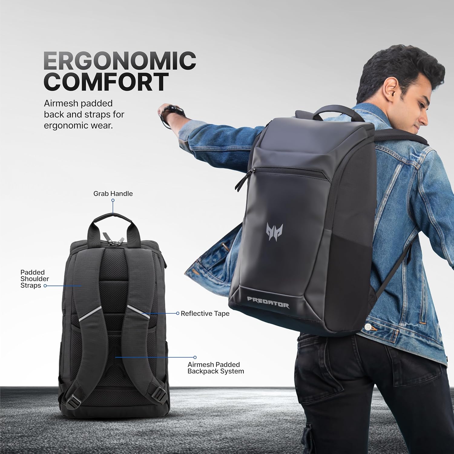 【💺 Pro-Level Comfort for Marathon Sessions】Airmesh-padded back system, wide shoulder straps with reflective accents, and Predator-branded luggage strap deliver elite ergonomics for long commutes or LAN marathons.