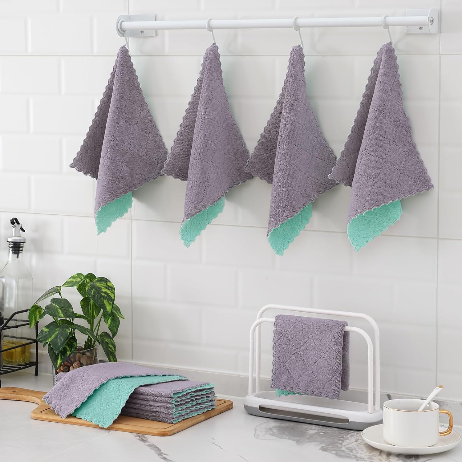 Premium Microfiber Cleaning Cloth: The reusable kitchen towel is made of polyester material, the microfiber cloth can easily capture dust, dirt and debris, absorb liquid and moisture, and effectively wipe away oil and stains. Reusable and machine washable cleaning supplies, keep it clean and tidy.