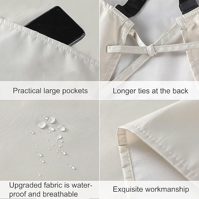 Customers give mixed feedback about the apron’s quality. Moreover, the apron is not waterproof, and customers find it to be a waste of money. Additionally, the material quality receives negative reviews, with one customer noting the material is very thin.