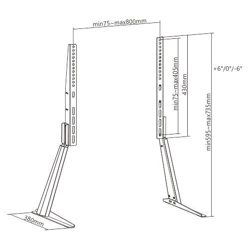 With a slim design and strong steel structure, the perfect for supporting most 32″-70″ flat panel TVs up to 50kg/110lbs while taking up little surface space. A 6° tilt adjustment positions the TV for the best viewing angle and the 3 height adjustable levels accommodate different sized TVs. The foam foot pads protect furniture from scratches or scuffs.