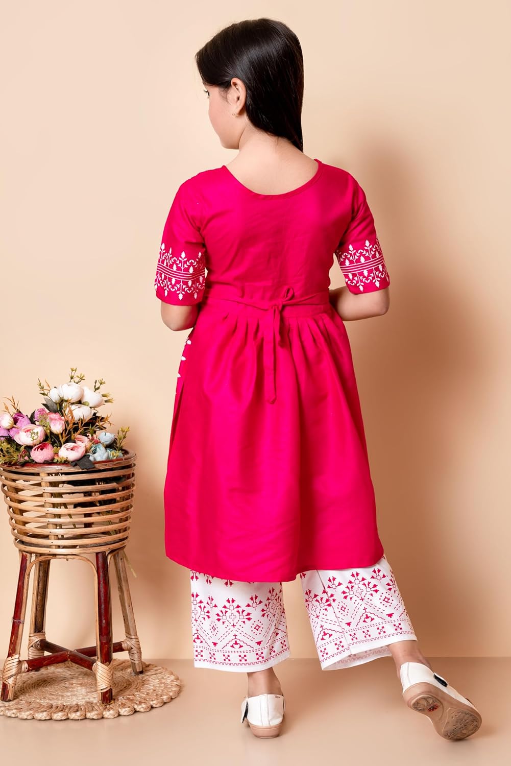 Badshah New DRESSES Cotton Blend Casual Printed Short Sleeves Long Kurta and Pallazzo Set for Girls Kids