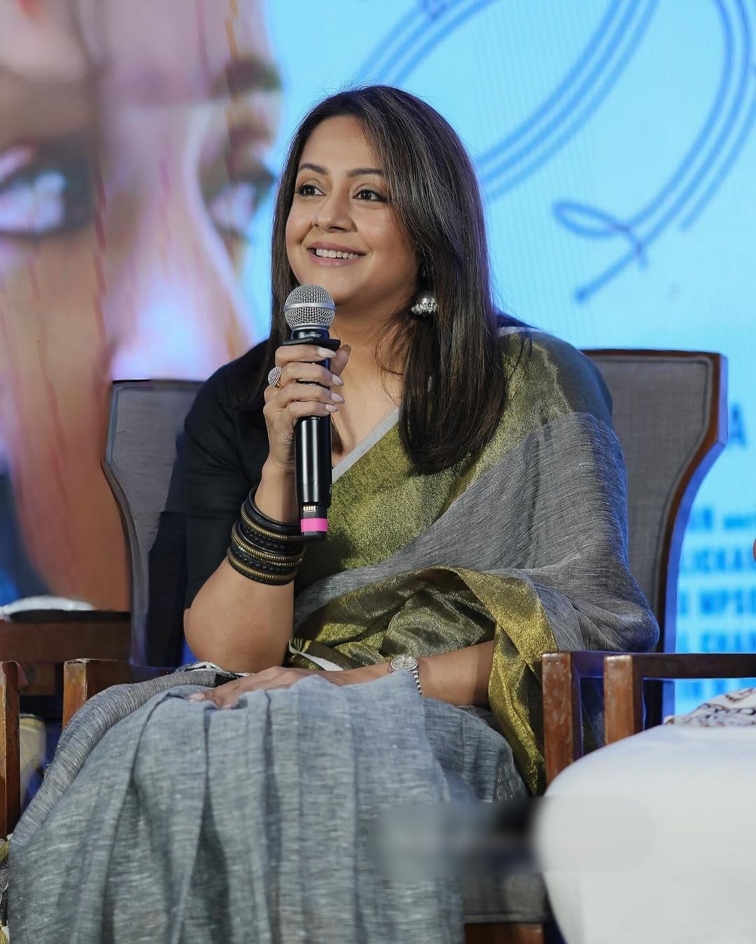 Beautiful Organic Grey Big Gold Zarin Border Linen Saree-Jyothika-Mrunal Thakur