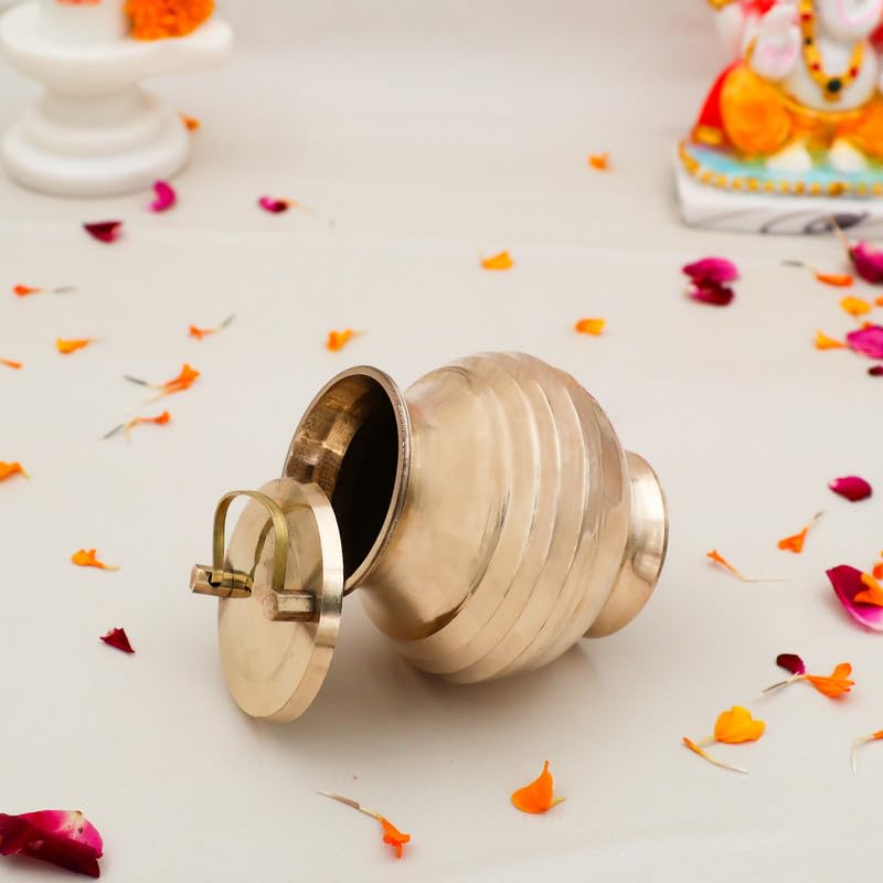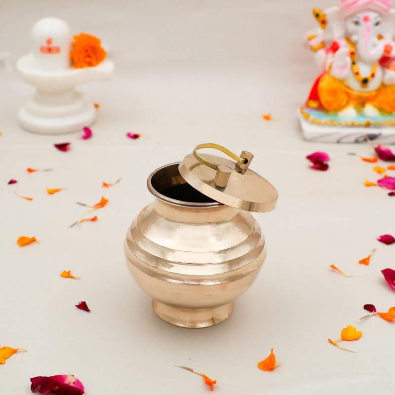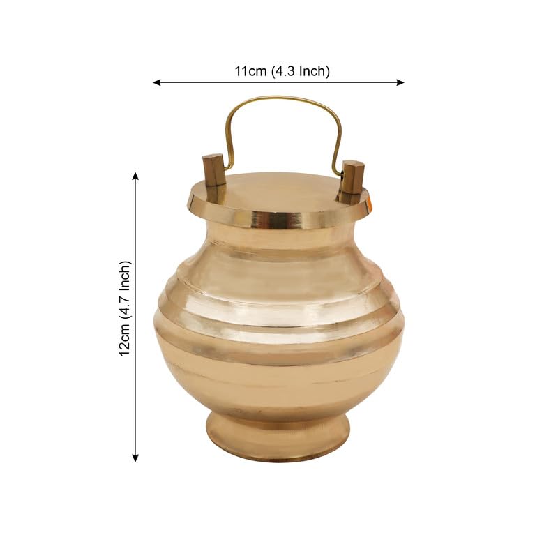 Brass Pavitra Kamandal | Gangajali | Kalash | Lota | with Lid for Gangajal | Holy Water Pot for Temple & Home and All Pooja (Capacity : 400ml | Size : 11cm | Weight : 229gm Approxe)