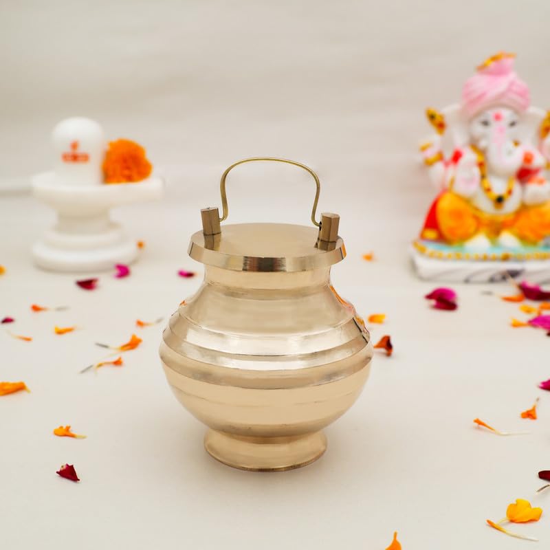 Symbolism: Represents purity, prosperity, and the sacredness of water in Hindu culture. Lid Cover: Ensures the contents, often holy water or sacred items, remain secure and uncontaminated.