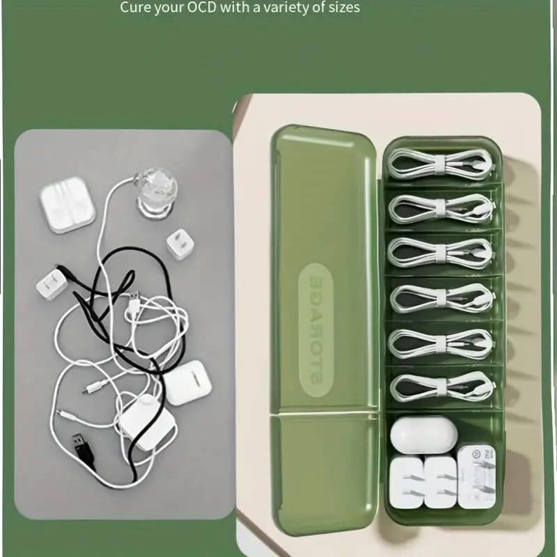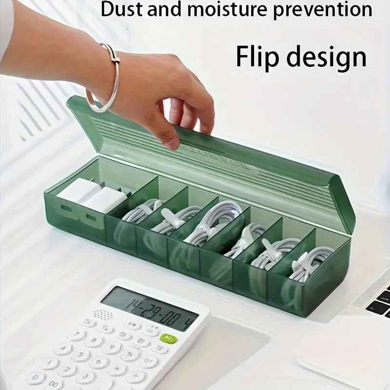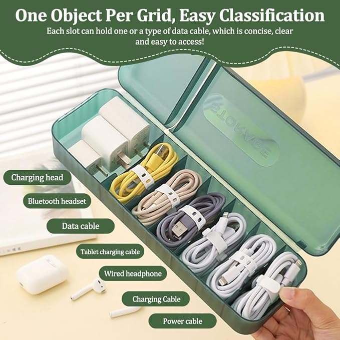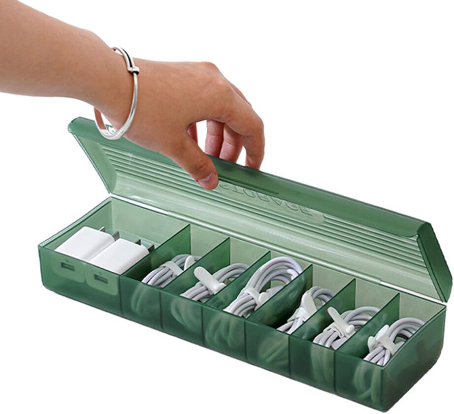 Features 7 separate sections to neatly store cables, chargers, USBs, and small accessories. Slim, lightweight box easily fits in drawers, bags, or office desks without taking up much space.