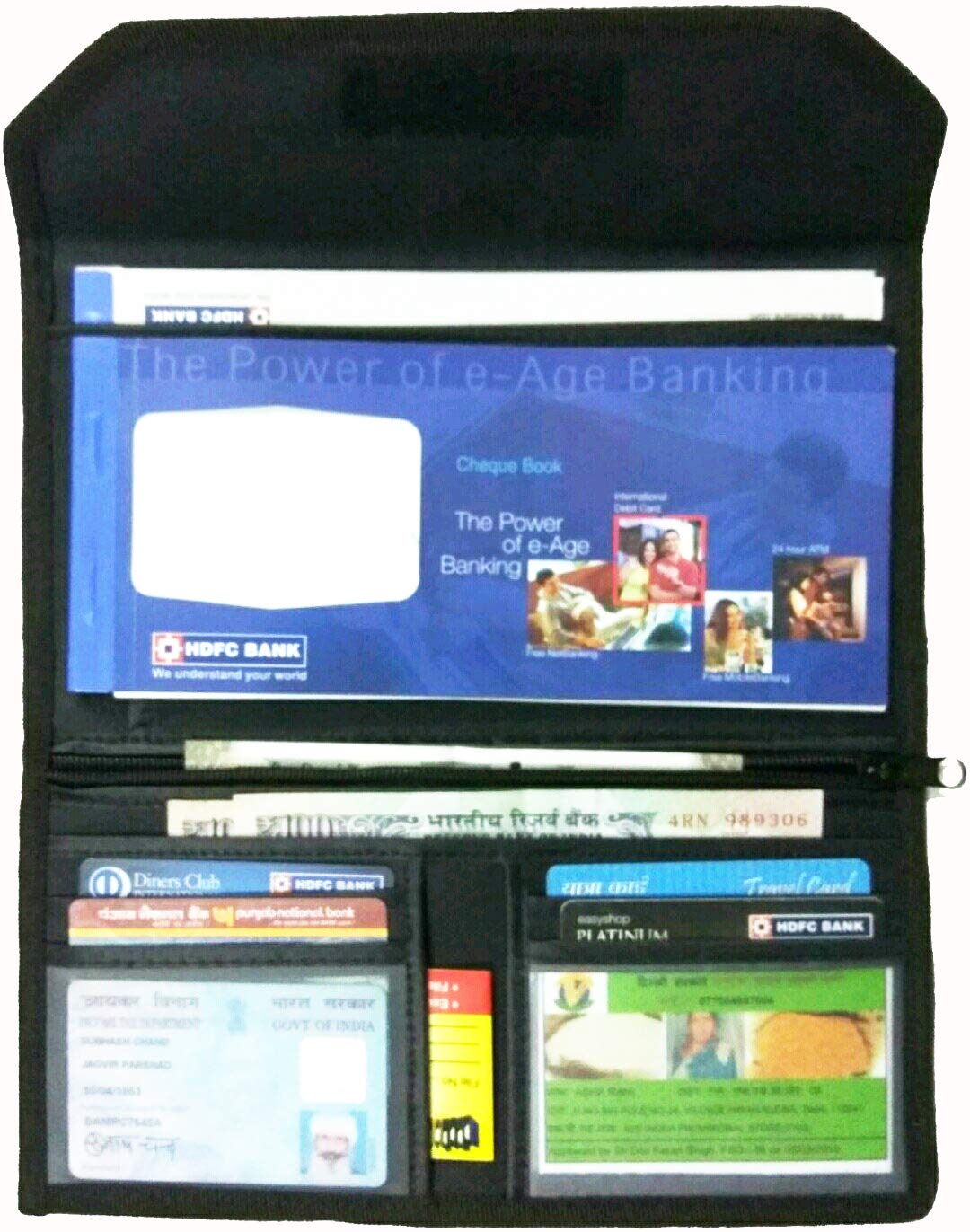 Structure: There is Multipocket mini Wallet. It has one zipper pouch, three passbook size pockets, and two transparent bags which is use for storing your photo ID Cards, Driving License, two more pockets to store your money.