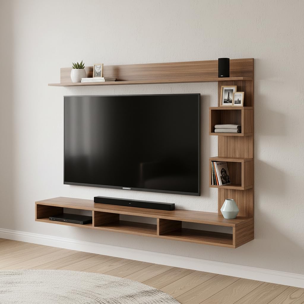 Storage compartments for set-top box, router, gaming console & media players and shelves for books, décor items, plants & showpieces