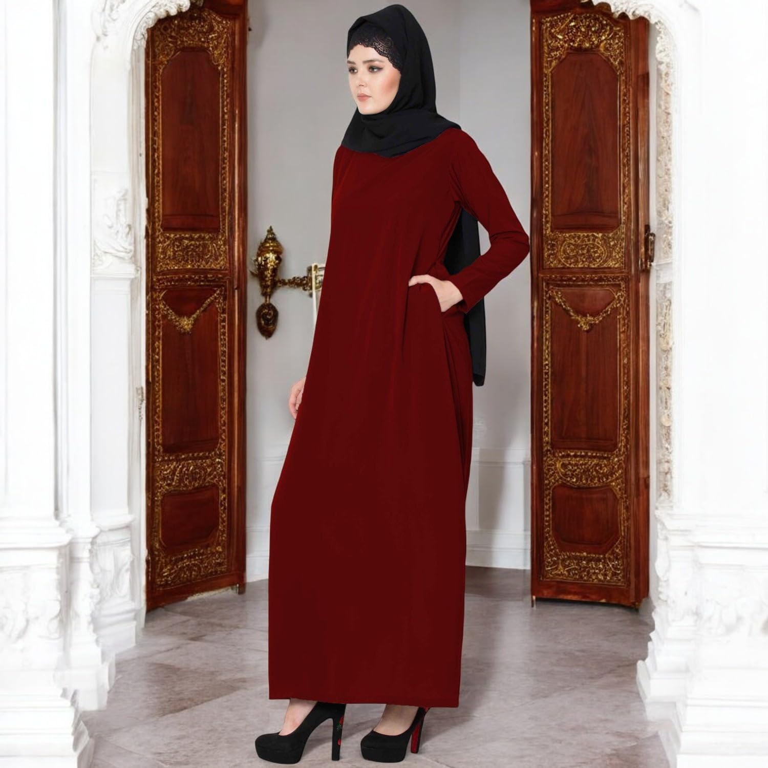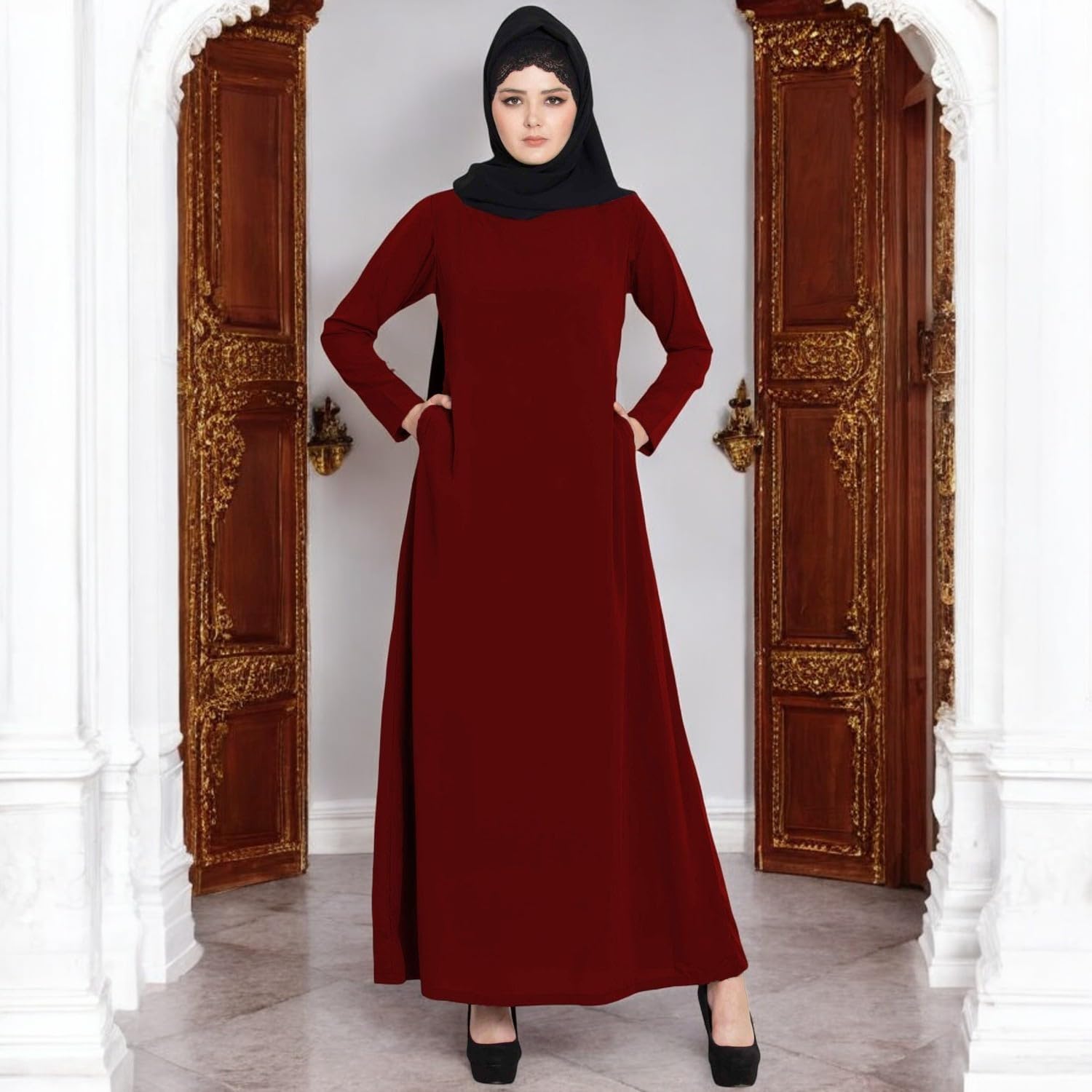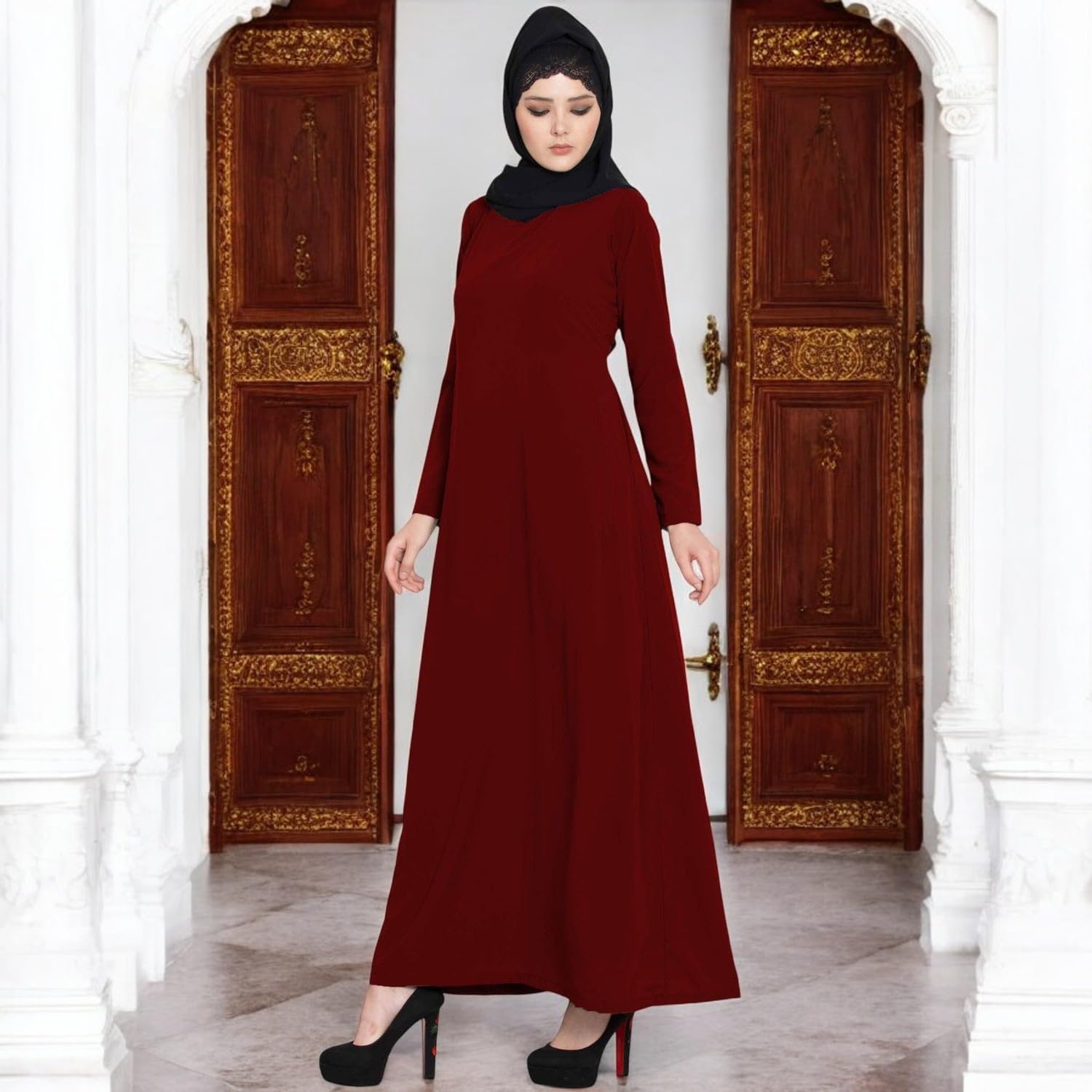 Elevate your modest fashion collection with the Bashariya Elegant Closed Abaya, crafted from premium Firdaus fabric for a luxurious feel and graceful drape. Designed with precision, this abaya offers a closed style for complete coverage and a polished look, making it ideal for daily wear, religious gatherings, or special occasions. The rich maroon shade adds a touch of sophistication, while the smooth texture ensures all-day comfort. Perfect for the modern woman who values elegance, modesty, and high-quality craftsmanship in her wardrobe.