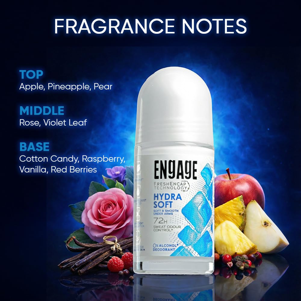FROM ENGAGE — INDIA’S LOVED FRAGRANCE DEODORANT BRAND: Millions of Indians trust Engage for modern, long-lasting fragrances. These roll ons are designed for the contemporary Indian woman.