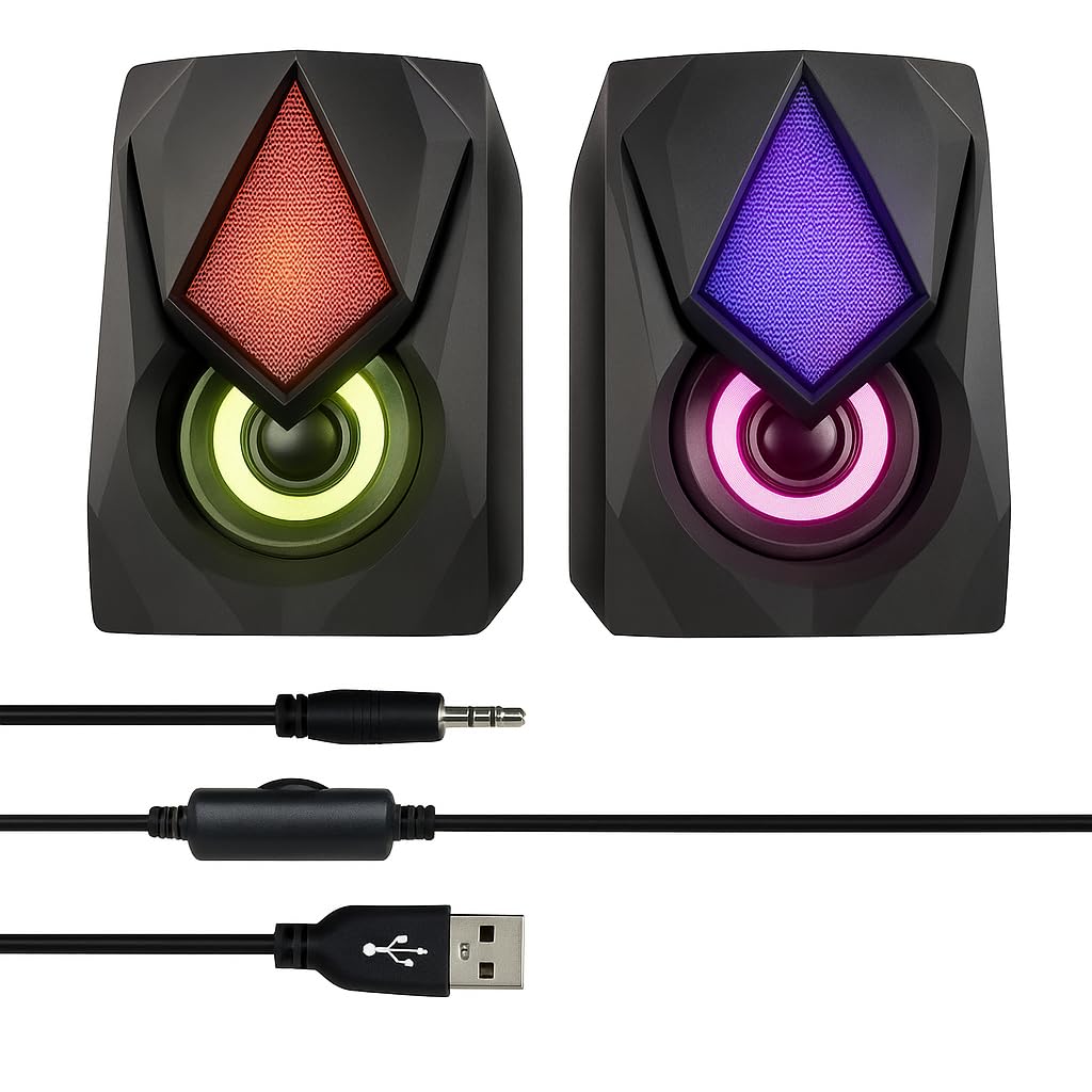 Introducing the Fire Turtle RM-601cs RGB Lights Computer Speaker, a powerful and visually stunning addition to your audio setup. This 2.0 channel speaker system is designed to enhance your audio experience on laptops and desktops while providing a captivating visual display with its built-in RGB lights. Key Features: 10W Stereo Sound: The Fire Turtle RM-601cs packs a punch with 10 watts of total power output, delivering crisp and immersive audio quality. Whether you’re gaming, streaming, or just enjoying your favorite music, this speaker system ensures clear and dynamic sound. Bluetooth Connectivity: Say goodbye to tangled wires and enjoy the convenience of wireless connectivity. The built-in Bluetooth feature allows you to effortlessly connect your laptop or desktop to the speakers, providing a hassle-free audio experience. RGB Lighting: The RGB lights add a touch of elegance to your workspace. These customizable lights can sync with your music or gaming audio, creating a captivating visual display that elevates your overall multimedia experience. Choose from various lighting modes to suit your mood and style. Sleek Design: The Fire Turtle RM-601cs is sleek and modern, designed to complement your computer setup. Its compact size makes it a space-saving choice, while its black finish adds a touch of sophistication to your workspace. Easy Control: Control your audio and lighting with ease. The speaker system comes with intuitive buttons for adjusting volume, changing tracks, and customizing the RGB lighting effects. Versatile Connectivity: In addition to Bluetooth, this speaker system offers various connectivity options, including a 3.5mm auxiliary input and a USB port, ensuring compatibility with a wide range of devices. Plug and Play: Setting up the Fire Turtle RM-601cs is a breeze. Simply plug it into your laptop or desktop via the 3.5mm audio jack or connect wirelessly via Bluetooth, and you’re ready to enjoy enhanced audio and stunning RGB lighting.