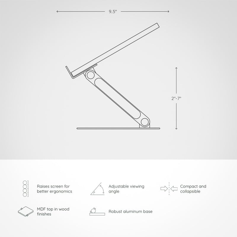 Reduces eye, neck and back strain by raising screen height and adjusting screen angle for improved ergonomics