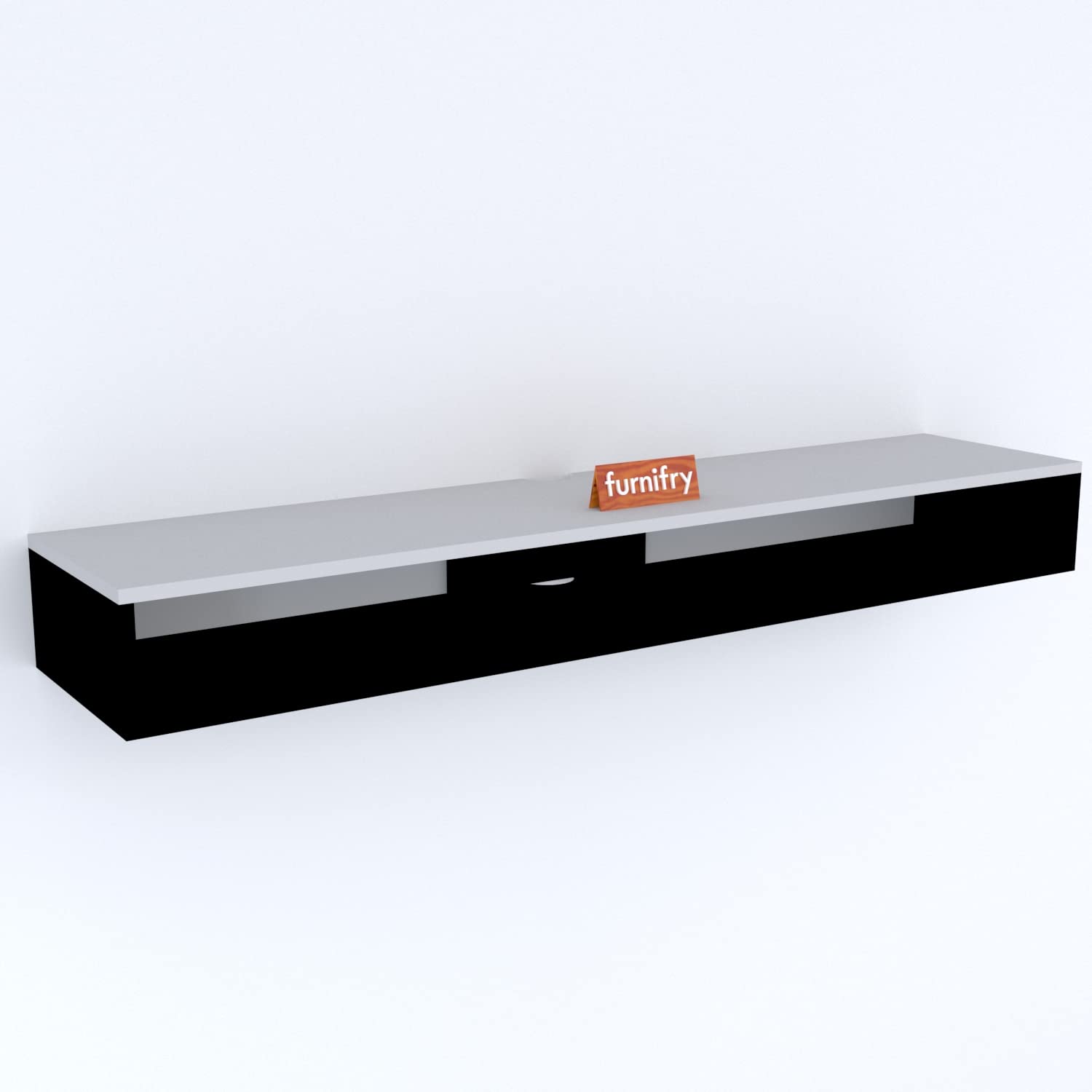 The TV Entertainment Unit has Dimensions: Length 90 cm x Breadth 8 cm x Height 11 cm | Color: Black and White | Style: Modern | Material: Engineered Wood | Size: Suitable for TV up to 42″