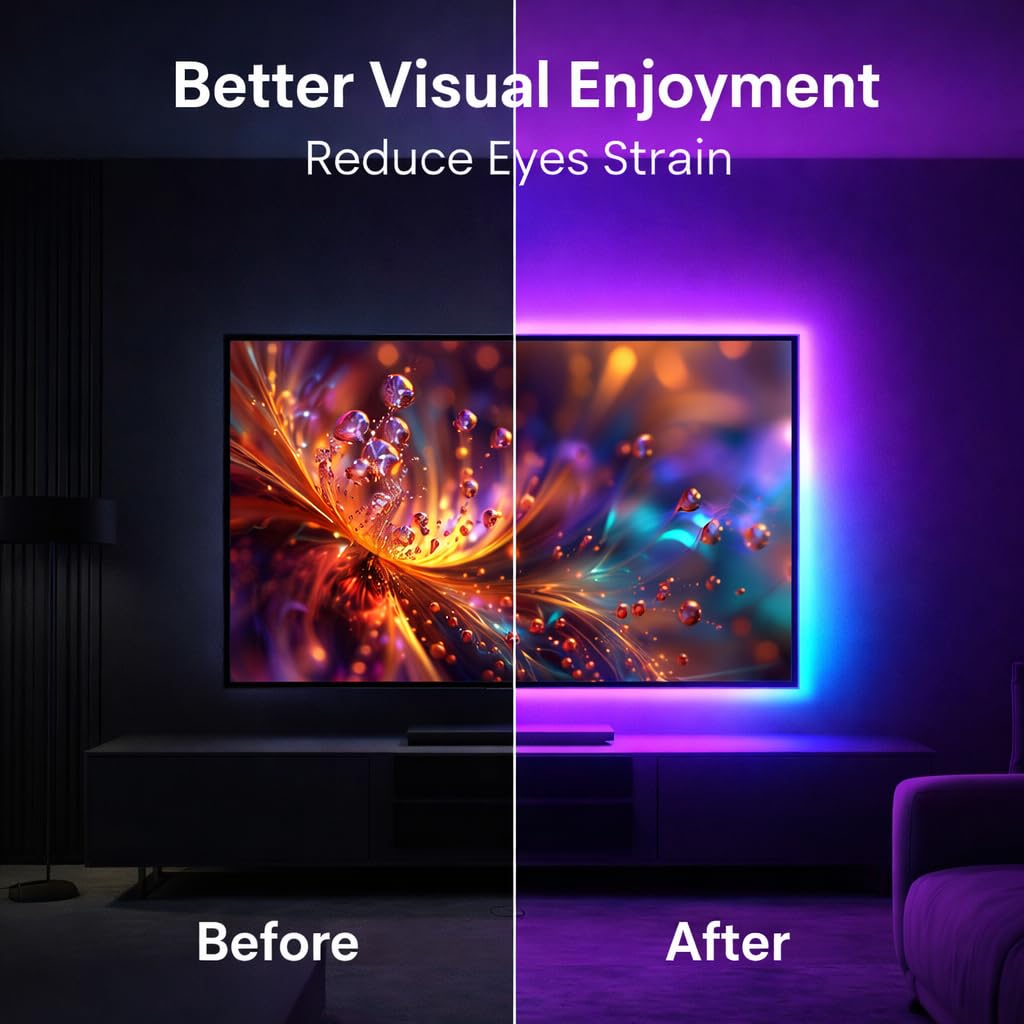 📱 App & Remote Control – Control your LED TV backlight easily using Bluetooth mobile app or included remote. Adjust colors, brightness, scenes, and modes effortlessly without moving from your seat. App connection is required for advanced features like music rhythm mode.