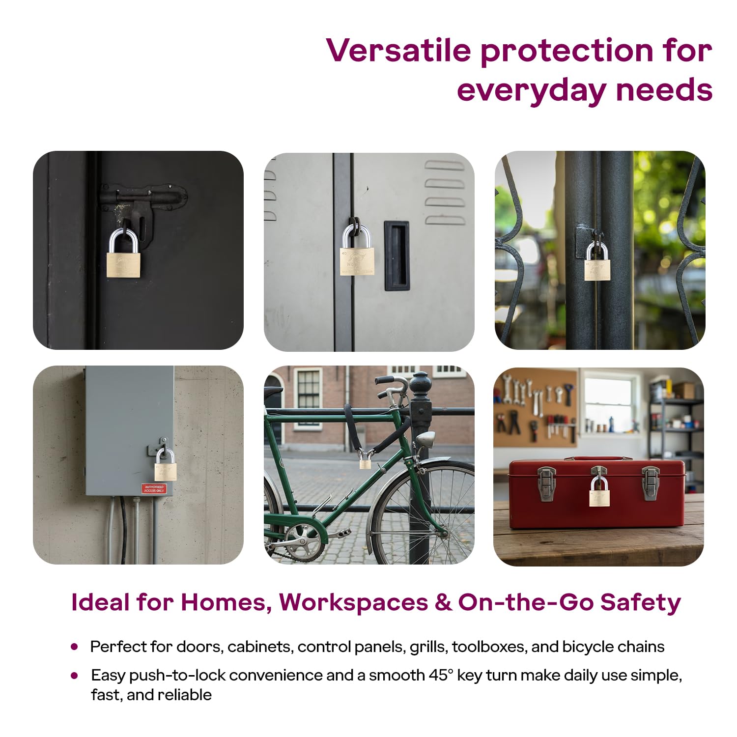 APPLICATION : For indoor and outdoor use. Godrej No. 1 padlock is best used for Main door aldrops, grill and shutters, Cycle cables, lockers, cabinets, trunks, luggage.
