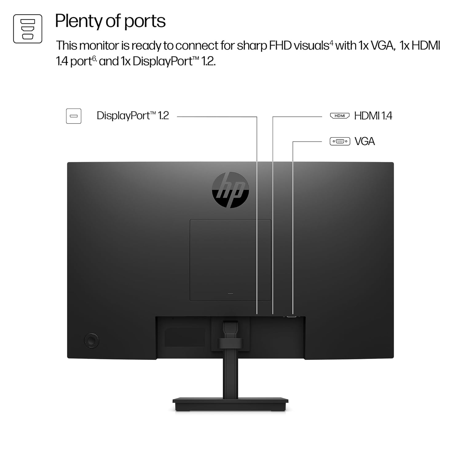 Plenty of Ports This monitor is ready to connect for sharp FHD visuals with multiple ports including 1 x VGA, 1 x HDMI 1.4, and 1 x DP 1.2. [4,5]