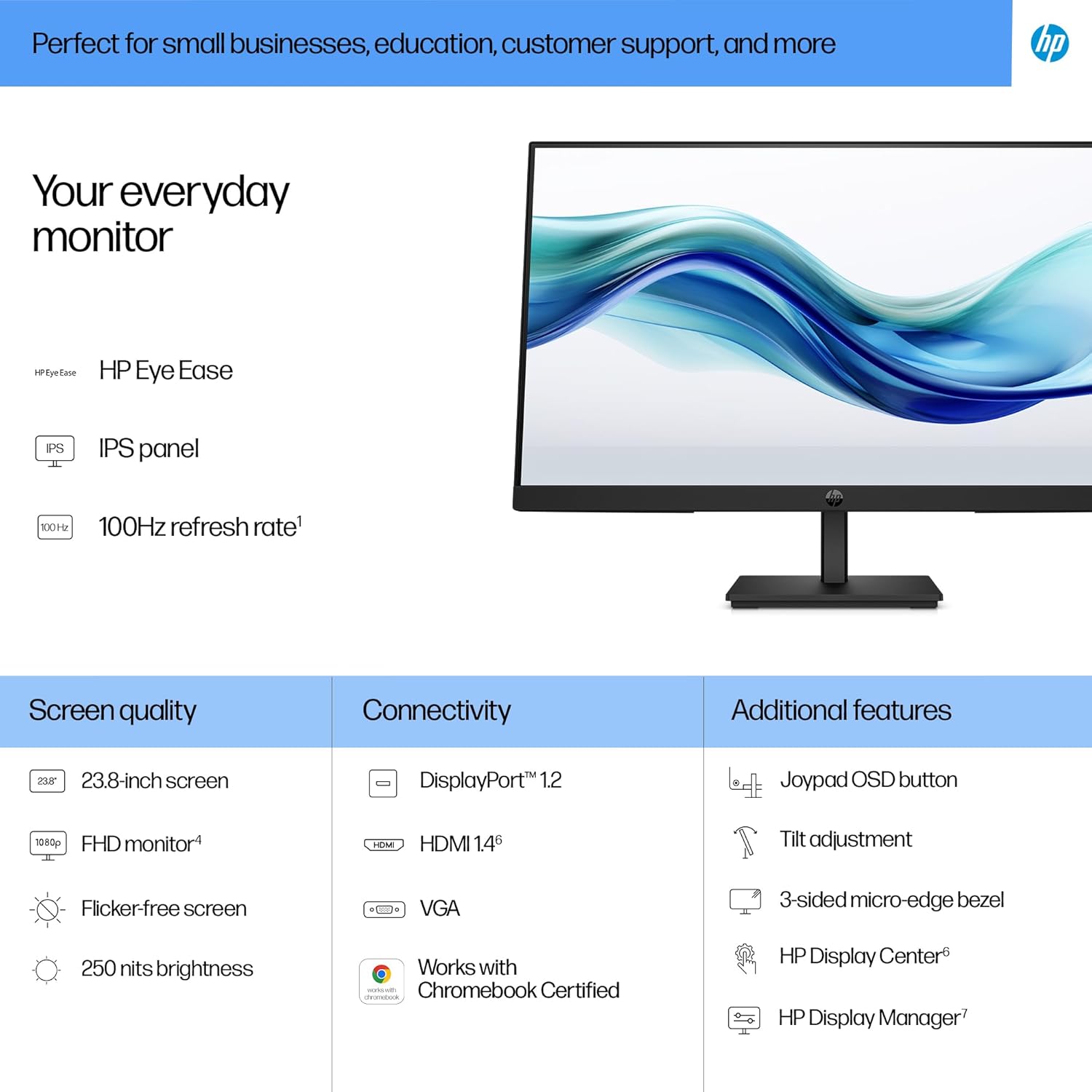 100 Hz Refresh Rate Experience smooth scrolling, life-like video and clear detail with a 100 Hz refresh rate that provides uid movement from frame to frame. [1]