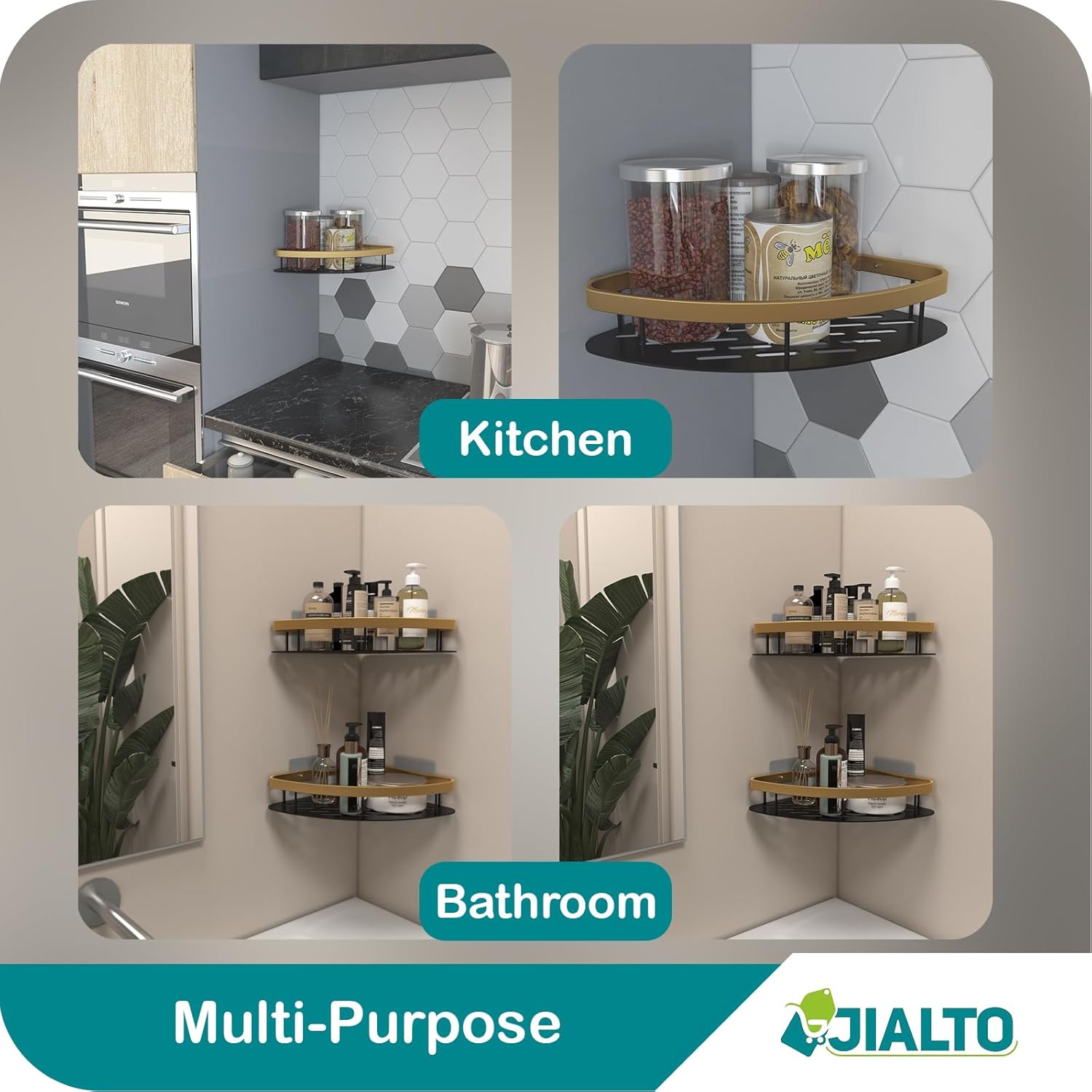 𝐄𝐥𝐞𝐠𝐚𝐧𝐭 𝐆𝐨𝐥𝐝 𝐅𝐢𝐧𝐢𝐬𝐡 : Our 𝐜𝐨𝐫𝐧𝐞𝐫 𝐬𝐡𝐞𝐥𝐟 𝐟𝐨𝐫 𝐛𝐚𝐭𝐡𝐫𝐨𝐨𝐦 features a luxurious gold finish, adding a touch of elegance to your 𝐛𝐚𝐭𝐡𝐫𝐨𝐨𝐦 𝐚𝐜𝐜𝐞𝐬𝐬𝐨𝐫𝐢𝐞𝐬. This 𝐛𝐚𝐭𝐡𝐫𝐨𝐨𝐦 𝐬𝐡𝐞𝐥𝐟 𝐟𝐨𝐫 𝐰𝐚𝐥𝐥 is not only stylish but also functional, providing ample storage space.