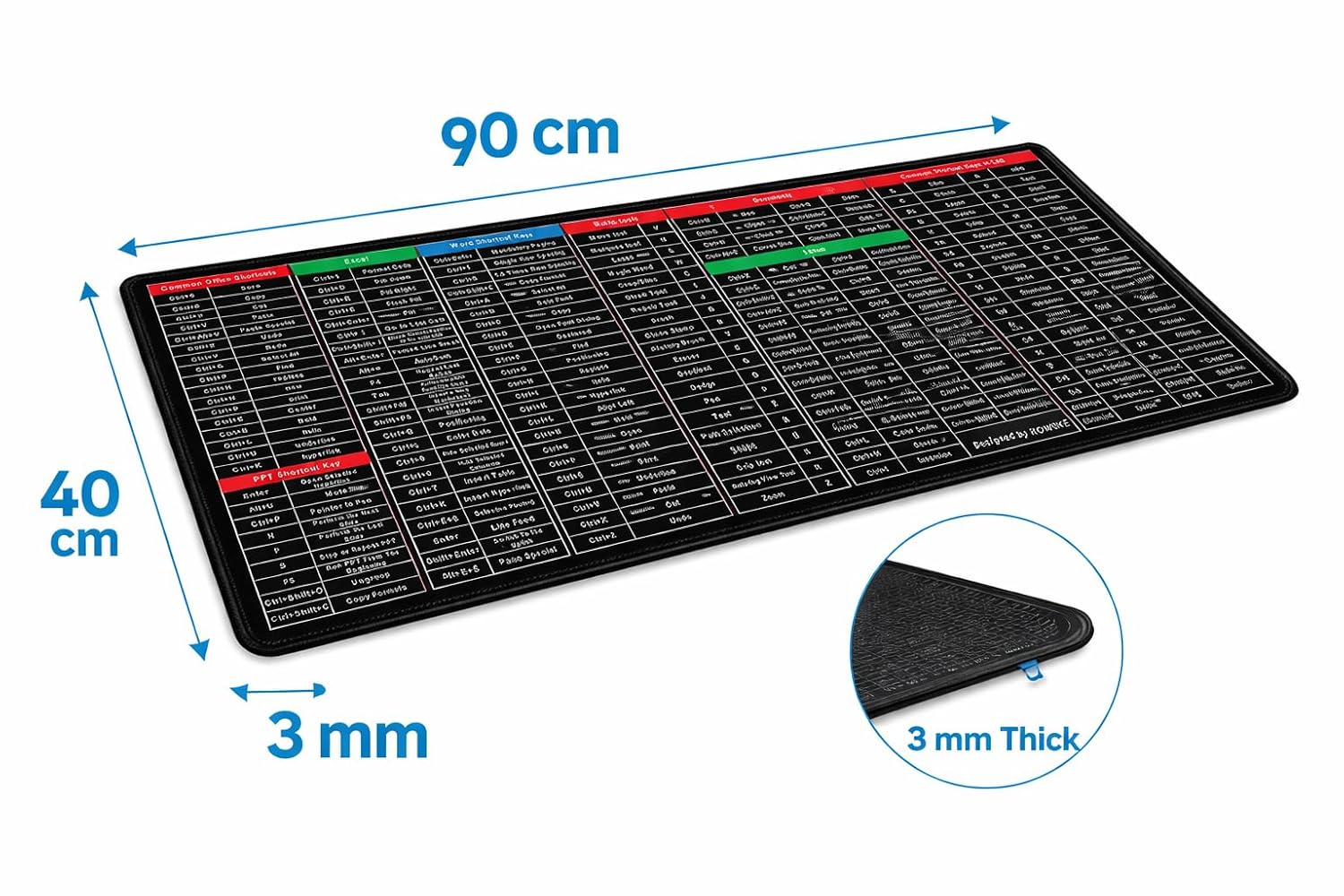 The keyboard shortcut desk mat combines a practical reference chart with a large extended mouse pad, making it an ideal desk accessory for office work, coding, studying and professional computer use.