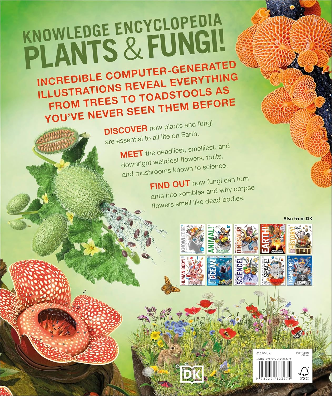 Knowledge Encyclopedia; Plants and Fungi! shows how plants and fungi form the foundations of every ecosystem, making our planet habitable. Life on Earth couldn’t exist without plants and fungi. Plants create the food we eat and the oxygen we breathe. They regulate the climate, provide habitats for animals, and produce sustainable resources that we can use to make books, clothes, furniture and houses. Fungi are just as important.