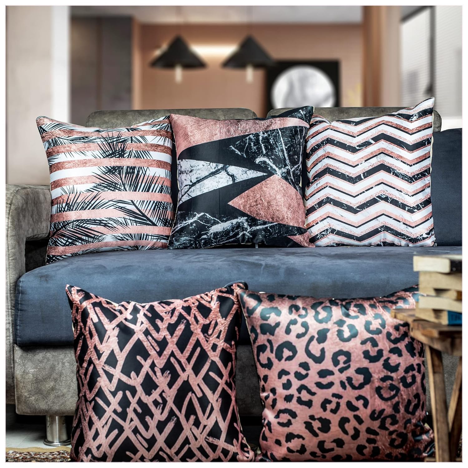 Decorate your room and sofa with the very stylish Vendola’s beautiful Classic Copper digital print cushion covers. We carefully hand stitched for stronger stitch quality. The prints are very trendy and are designed with ultra modern and elegant designs our cushion covers comes in Standard size with Microfiber Satin fabric digitally printed in HIGH DEFINITION. The set contains 5 cushion covers which is durable and anti static, machine wash able and very easy to wash. The zippers are hidden and is not easily seen and are smooth and easy to operate. Perfect decoration suitable for you home, office, coffee shop, etc. Compliment your interior/home with this trending Classic Copper designs cushion covers.