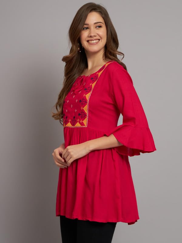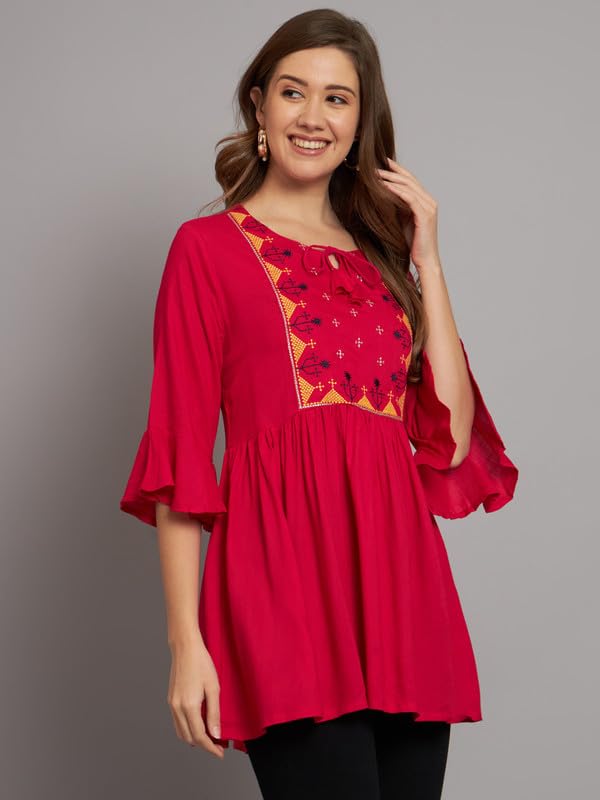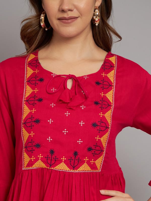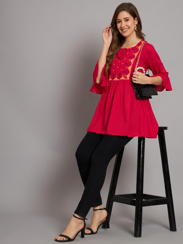 Add effortless charm to your everyday style with Miramaar Women’s Embroidered A-Line Top. This hip-length top features beautiful embroidery, a flattering A-line silhouette, and a comfortable fit—perfect for casual outings, daily wear, college, or work. Made with soft fabric for all-day comfort and a stylish ethnic-fusion look.