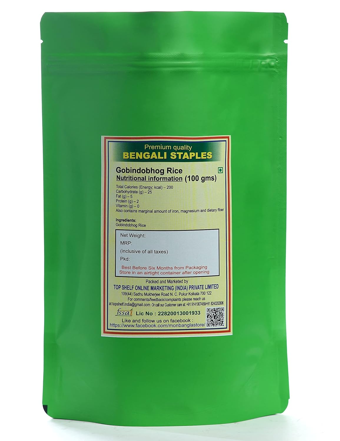 Gobindobhog rice has a sweet buttery flavor that creates delicious meal for everyoneFSSAI certified premium quality Bengali staples for your everyday meals.Pure vegetarian. No artificial flavours. No preservatives