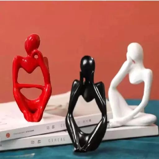 Contemporary Elegance: The Mrittika Shilp Ceramic Thinker Showpiece Set boasts three modern art man figurines, meticulously crafted with ceramic precision, adding a touch of contemporary elegance to your home decor.