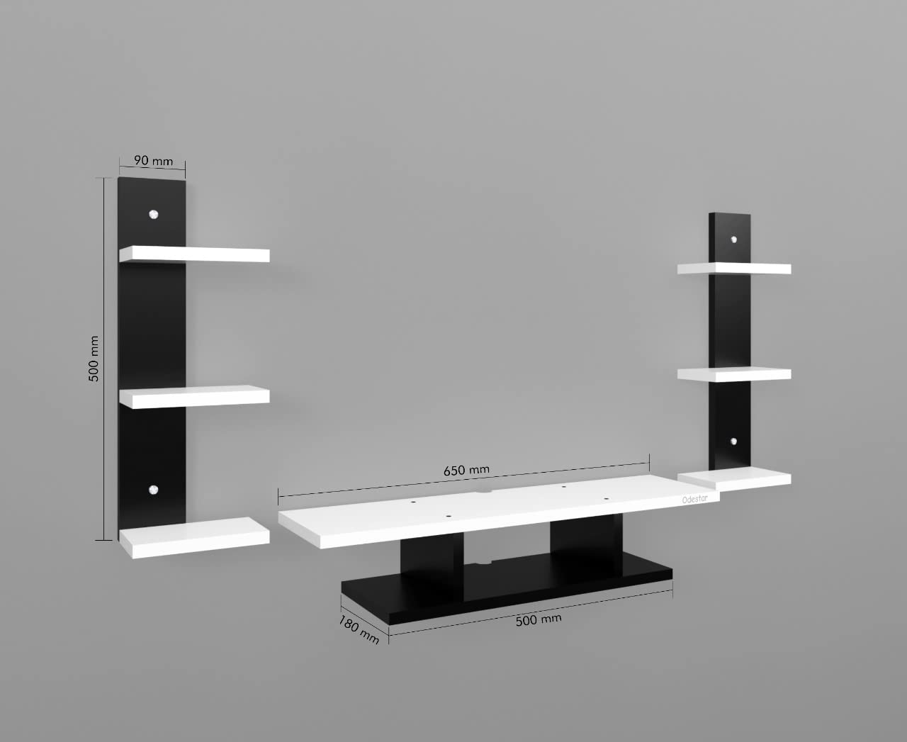 Large Countertops Ensure Ample Storage Space. Wall-Mount Design Doesn?t Take Much Space and Frees Up Valuable Floor Space. The Middle Compartment is Intended to Keep Your Set-Top Box While Books, Decorative Items & 4 Fully Functional Floating Open Shelves for Organize and Display Your Decorative Objects.