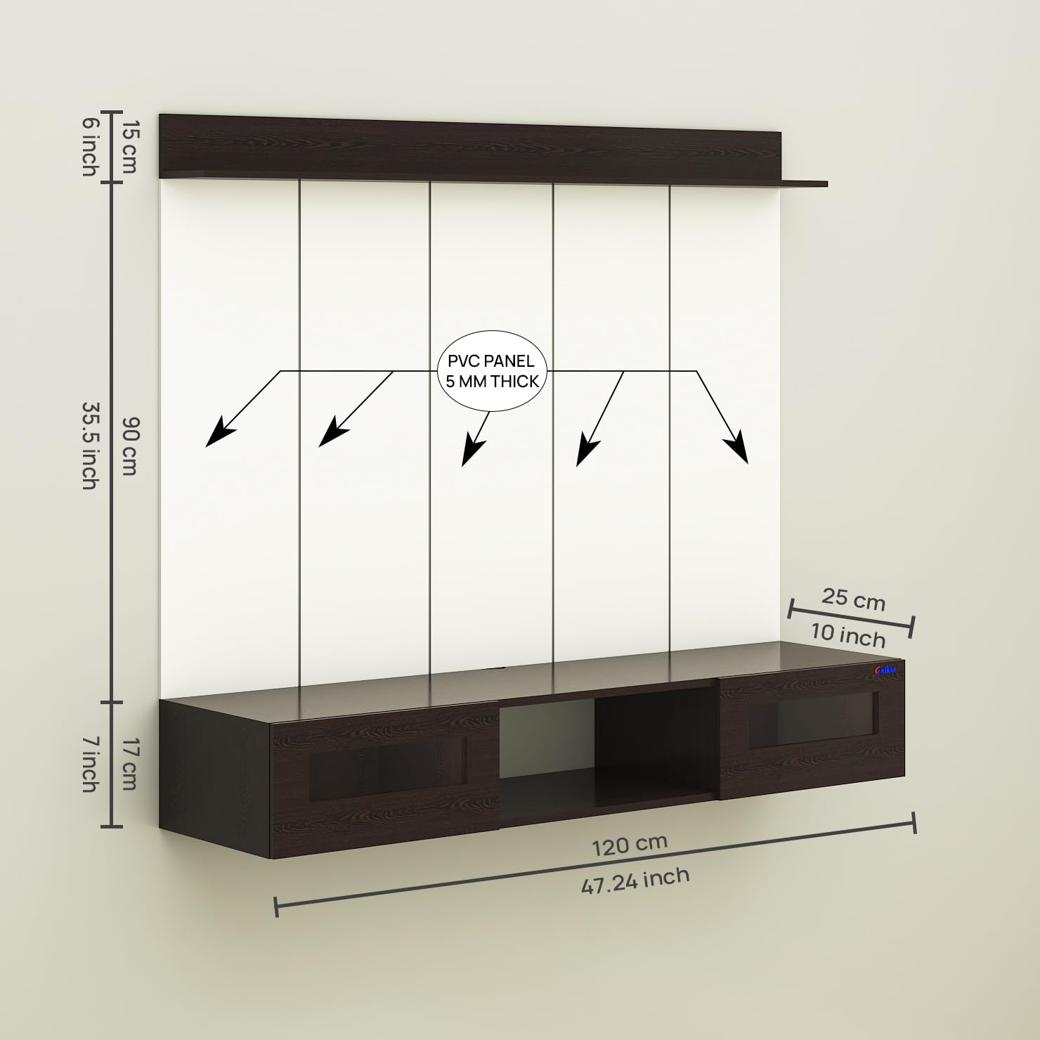 Modern Floating Wall-Mount Design with Display Shelf ? Stylish top display shelf to showcase decor pieces, clocks, and plants, giving your living room a premium and clutter-free look.