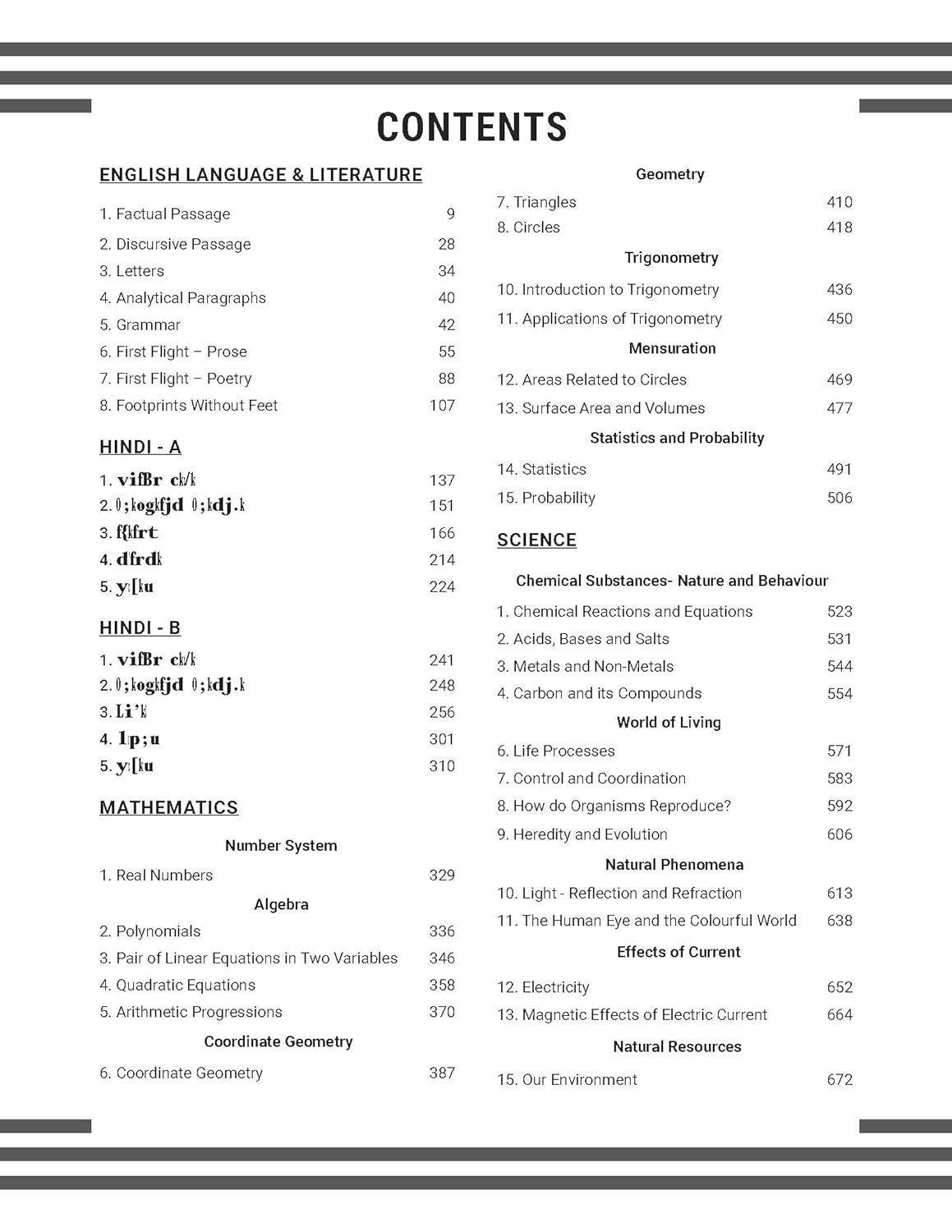 • All 6 Subjects in 1 Book namely English (Language & Literature), Maths (Standard), Science, Hindi-A, Hindi-B, and Social Science