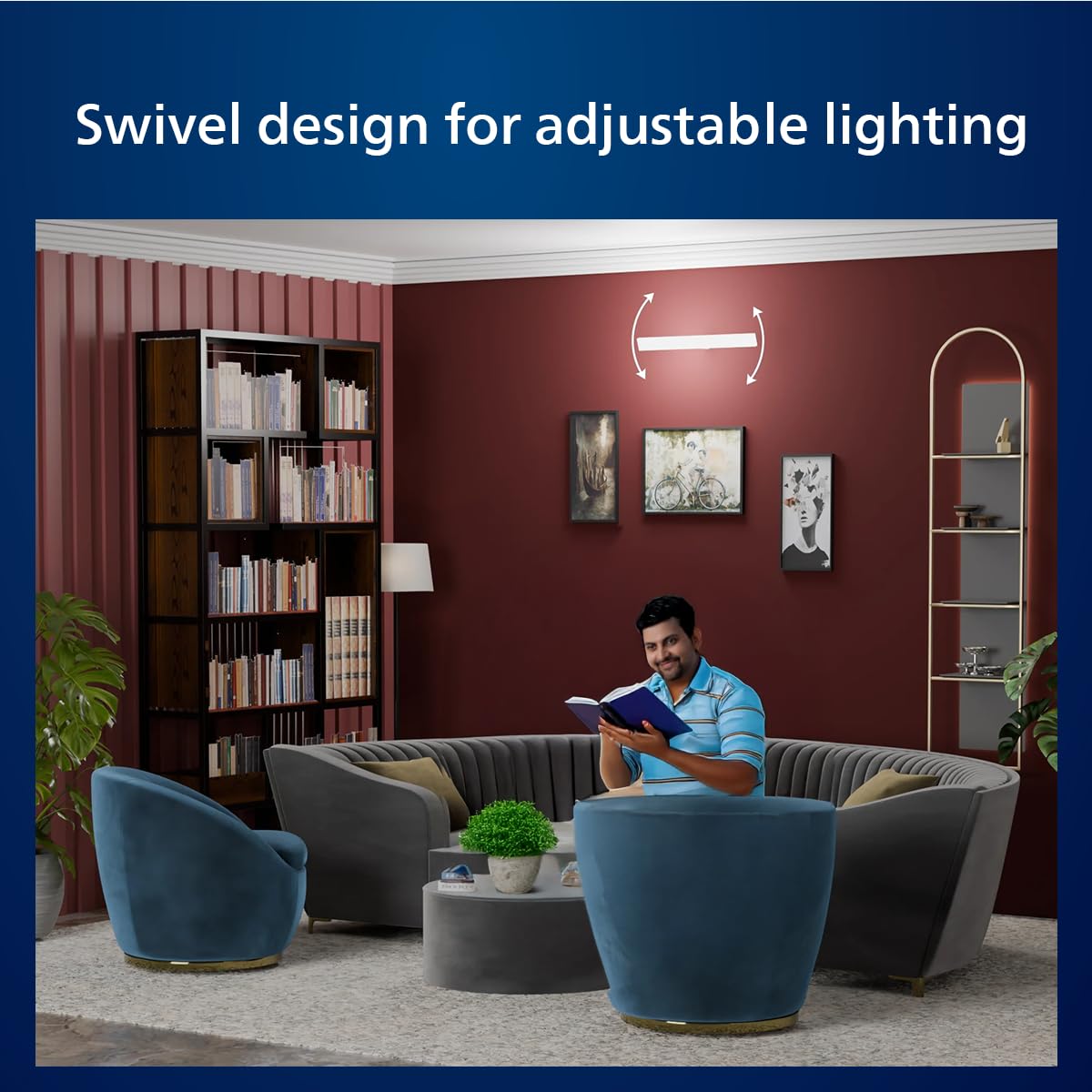 Swivelling body action: The Philips T bulb has a flexible swivelling body action in which its head can move both 90 degrees vertically and 35 degrees horizontally for better focus