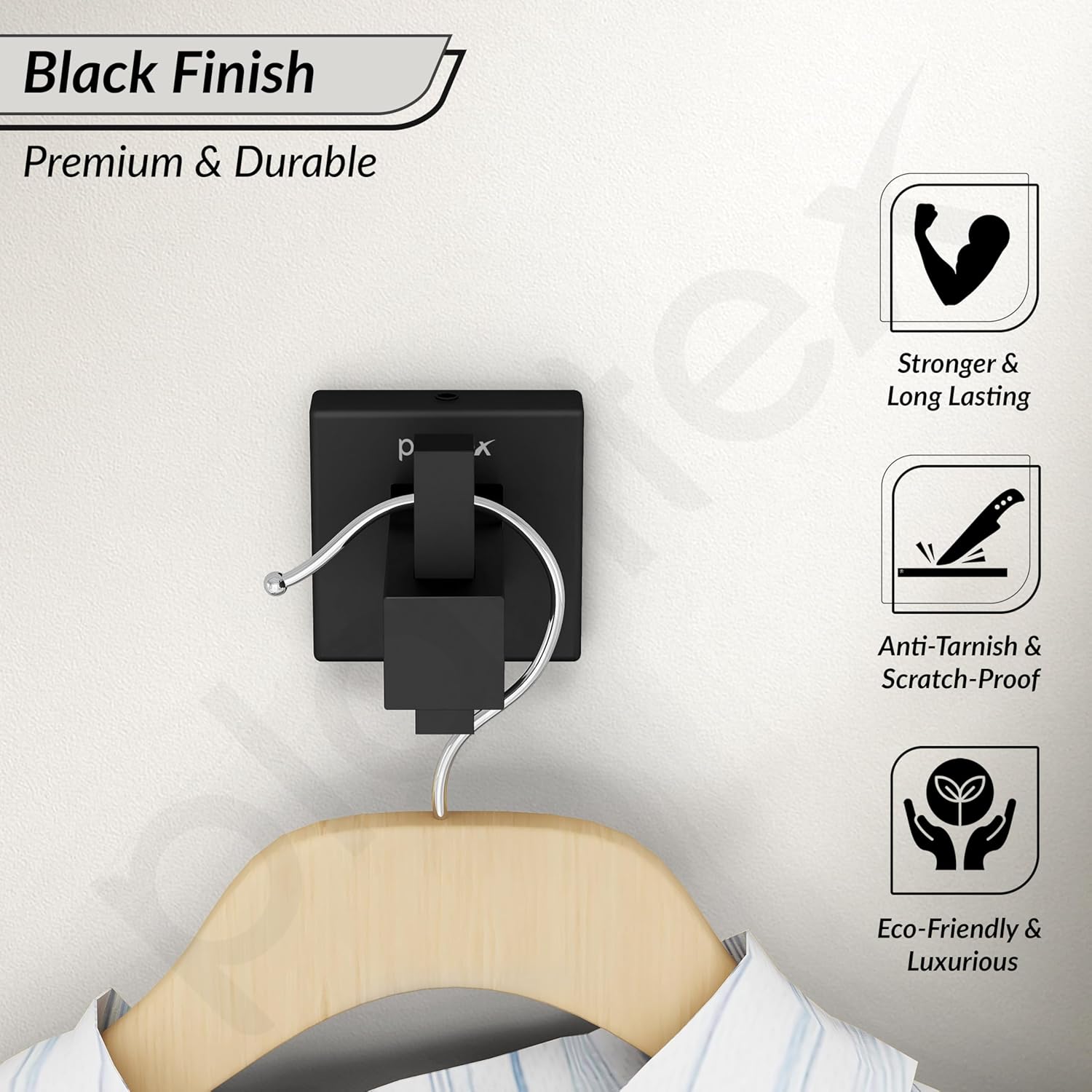 Along with its rust-proof build, this bathroom hook has a touch of 7 layer powder coated black finish and it keeps it scratches-free.
