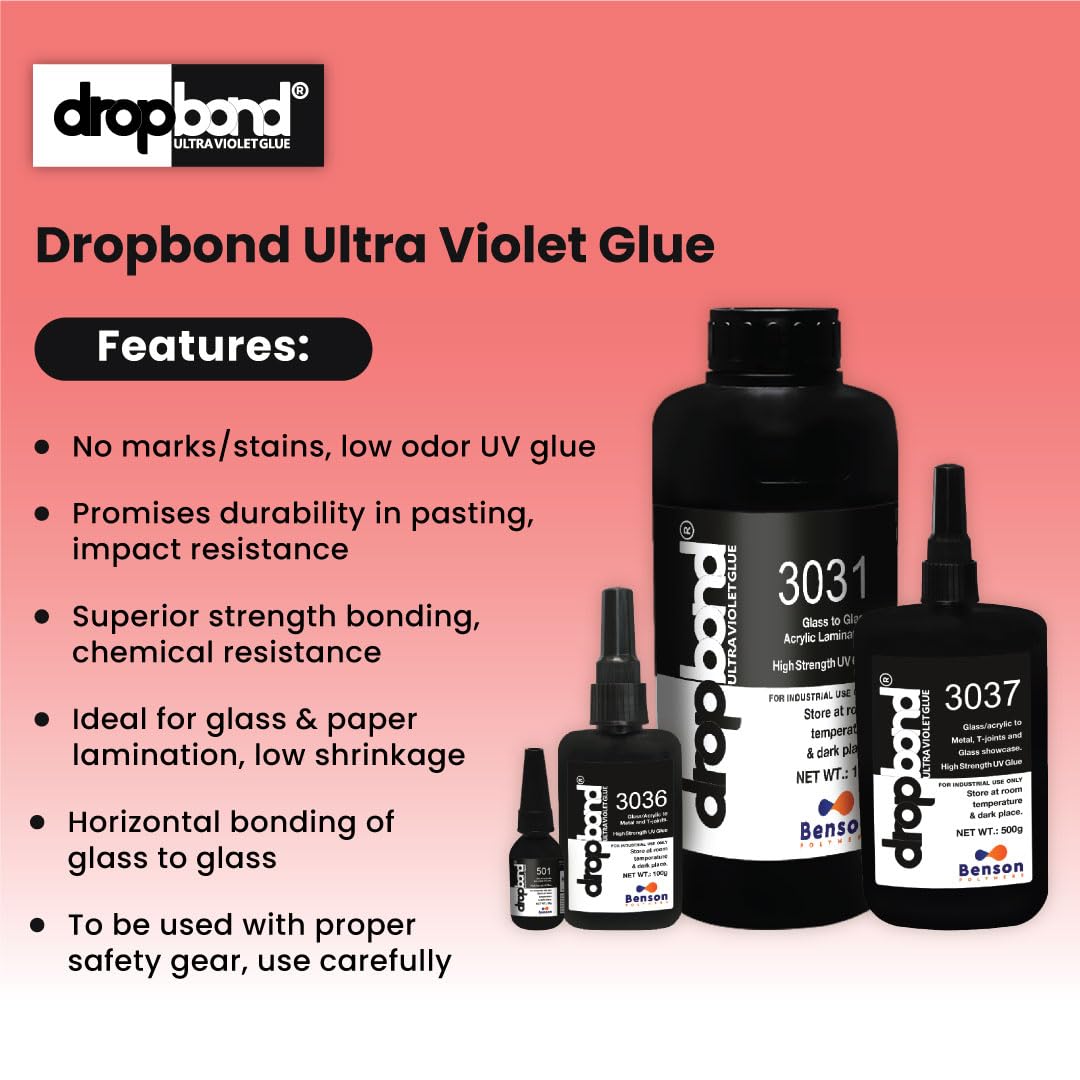 DropBond UV Glue 3030: The go-to solution for glass and acrylic lamination. This UV glue stands out with its clean and odor-reduced application, ensuring no marks or stains are left behind. Whether you’re working on glass or paper lamination, this adhesive guarantees durability and impact resistance, making it ideal for manufacturing glass trophies and decorative objects. It’s designed for horizontal glass-to-glass bonding, ensuring a strong and reliable connection. For safe usage, remember to employ proper safety gear and handle with care to achieve the best results. Trust DropBond UV Glue 3030 for flawless glass and acrylic lamination.