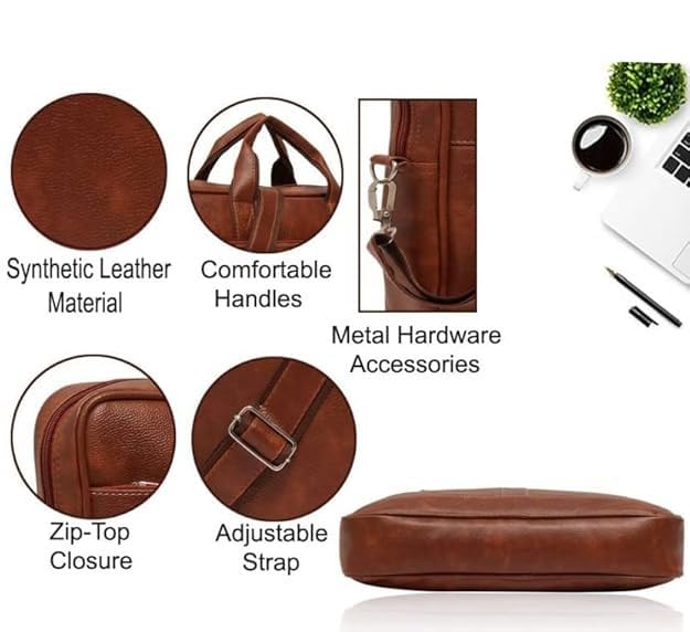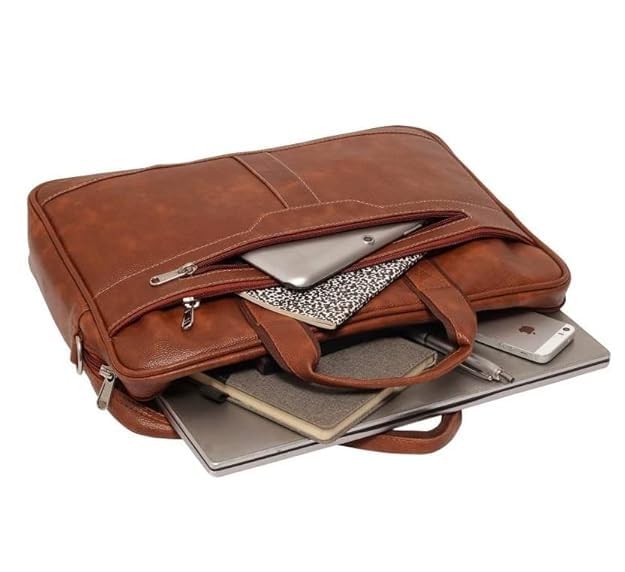 Elevate your professional appearance with this sophisticated brown leather laptop bag that seamlessly combines style and functionality. Crafted with premium leather that develops a rich patina over time, this briefcase-style bag features thoughtful organisation with multiple compartments including a dedicated laptop section. The contrasting white stitching adds a refined detail while reinforcing durability. A convenient front zip pocket provides quick access to essentials, while the adjustable shoulder strap offers versatile carrying options alongside the sturdy top handles. Perfect for business professionals, this spacious messenger bag accommodates your work essentials while maintaining a sleek silhouette. The classic brown colour and timeless design make it suitable for both formal office settings and business casual environments. The high-quality metal hardware ensures long-lasting performance, while the main compartment’s generous space easily fits documents, electronics, and daily necessities. Whether you’re heading to important meetings or daily office commutes, this leather briefcase offers both practical utility and sophisticated style.