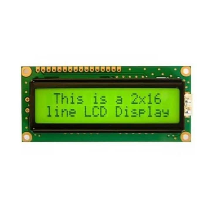A 16×2 LCD means it can display 16 characters per line and there are 2 such lines. , In this LCD each character is displayed in 5×7 pixel matrix. , Black text on green background , Connection port is 0.1″ pitch, single row for easy breadboarding and wiring , Pins are documented on the back of the LCD to assist in wiring it up , Single LED backlight included can be dimmed easily with a resistor or PWM and uses much less power than LCD with EL (electroluminescent) backlights. , Can be fully controlled with only 6 digital lines! , Built in character set supports most English/European/Japanese text, see the HD44780 datasheet for the full character set , Up to 8 extra characters can be created for custom glyphs or ‘foreign’ language support. Lcd display module consists of a yellow blacklight with wide viewing angle and has a high contrast. The LCD consists of a built-in industry standard HD44780 equivalent LCD controller. Commonly used in: Copiers, Fax machines, Laser printers, Industrial test equipment, networking equipment such as routers and storage devices. Lcm type: characters can display 2-lines x 16-characters. Voltage: 5v dc. Module dimension: 80mm x 35mm x 11mm. Viewing area size: 64.5Mm x 16mm features iic/i2c : 1602 i2c interface 4-wire 1602 screen io port of control board is only 20,so io ports is not enough for many sensor, sd card, relay modules. The original 1602 screen need 7 io ports to drive up, and this module can save 5 io ports. Package Includes: 1pcs 1602 16×2 hd44780 character lcd