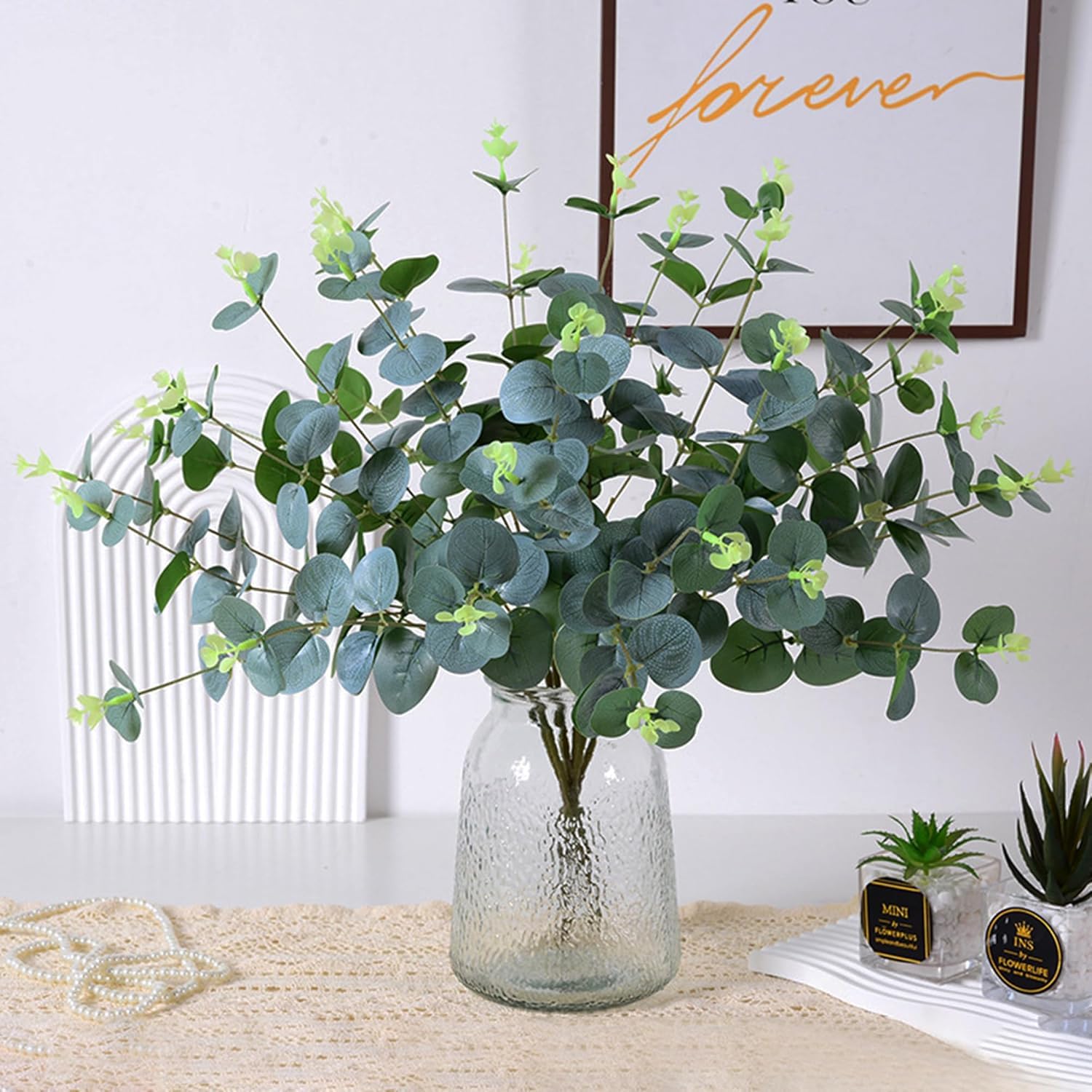 Year-Round Use: Artificial Eucalyptus Gingko Sticks offer the beauty of tropical foliage year-round, regardless of season or climate, allowing for consistent and reliable decor that remains fresh and vibrant without seasonal fluctuations.
