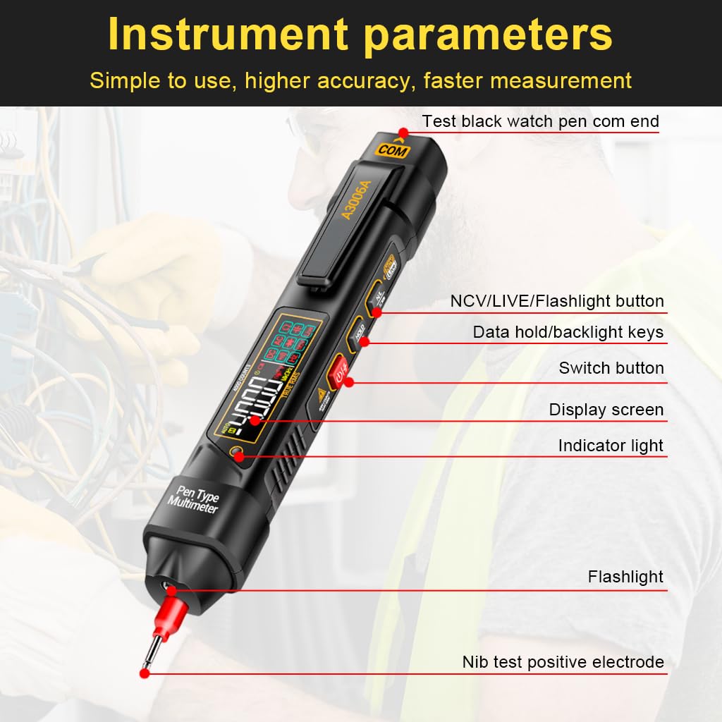 VERSATILE 2-IN-1 DESIGN: Combines the functionality of a digital multimeter and a voltage test pen, letting you easily measure AC/DC voltage, resistance, diodes, continuity, and null/live wires. Ideal for everyday electronics maintenance, appliance repair, and safe home electrical troubleshooting.