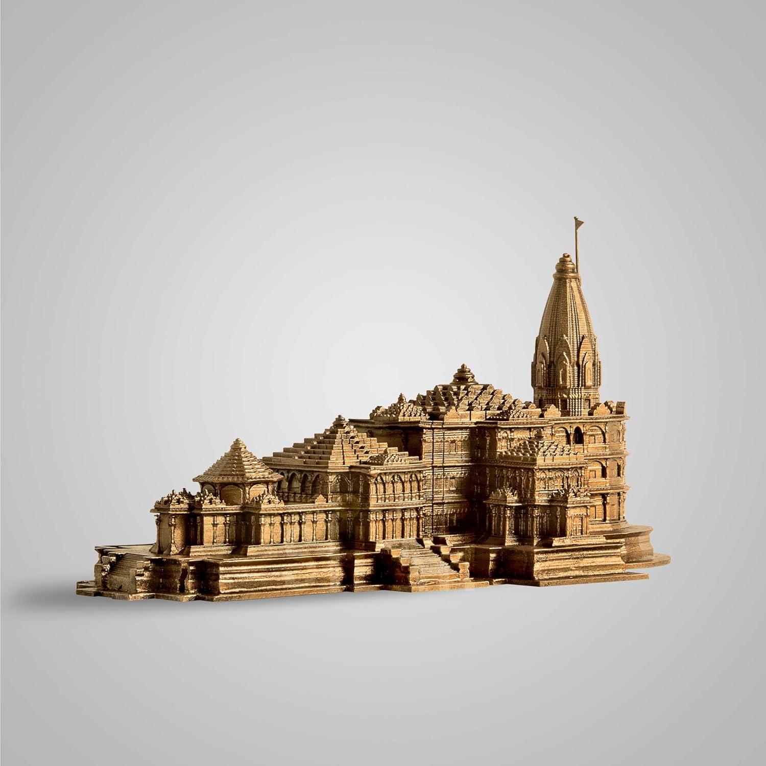 Elaborate Design: Beautifully crafted replica of the Ram Mandir, showcasing elaborate architectural details and fine craftsmanship.