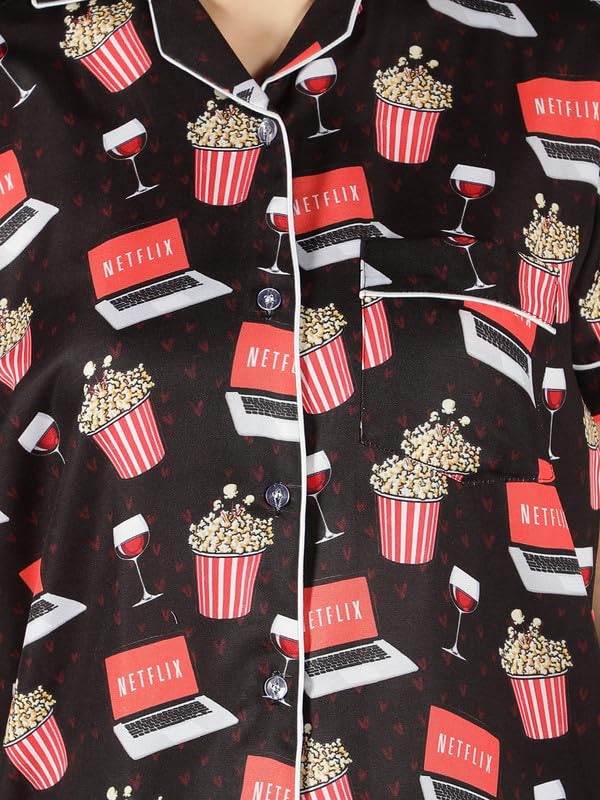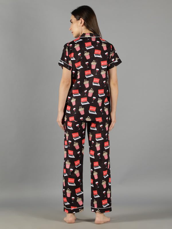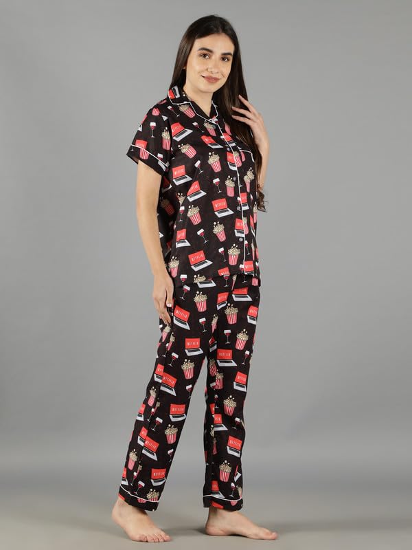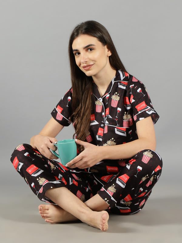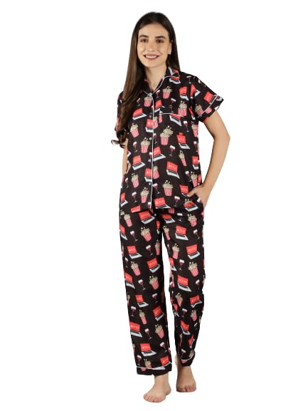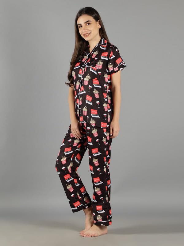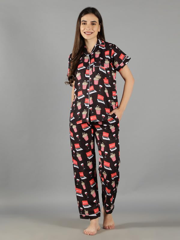 Product Type: Top & Pyjama Set ; Fabric Type: Cotton ; Pattern Type: Graphic Print ; Neck: Notched Collar ; Sleeve: Short Sleeve ; Number Of Pocket: 2Waist Rise: Mid Waist