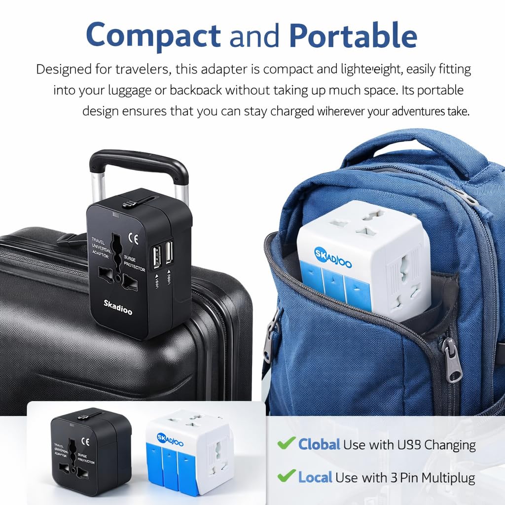 Introducing the SKADIOO Universal Travel Adapter, International All in One Worldwide AND Multiplug Combo, the ultimate solution for your global charging needs. This 3-in-1 universal travel adapter multi-plug ensures that you stay connected wherever your adventures take you, with its versatile design and convenient features. Experience hassle-free charging wherever you go with the SKADIOO Universal Travel Adapter, International All in One Worldwide AND Multiplug Combo. Stay connected, stay powered up, and stay ready for whatever the world throws your way.