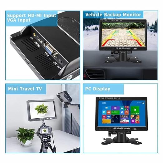 7 inch TFT LCD screen Automatic switch rear display function Standard HDMI high definition video input, support 1080P and all other formats HDMI, VGA,AV interface
