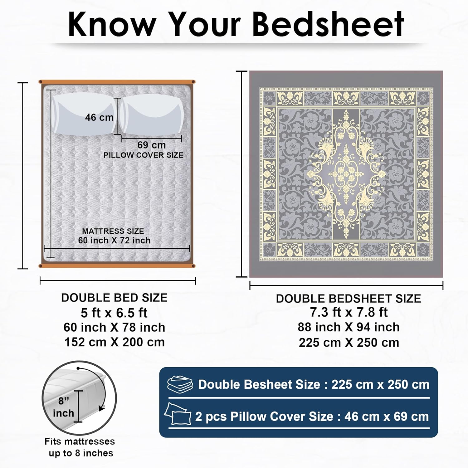 Easy Care:This bedsheet is easy to maintain. It is machine washable, and you can tumble dry it on low heat. This convenience ensures that it remains clean and fresh with minimal effort.its bedsheet for double bed king size. Its a Low maintenance bedding set combines beauty and practicality, allowing you to enjoy a stylish, comfortable bed without the usual hassles of fabric care. Its allowing you to mix and match styles for seasonal updates or personal preferences.