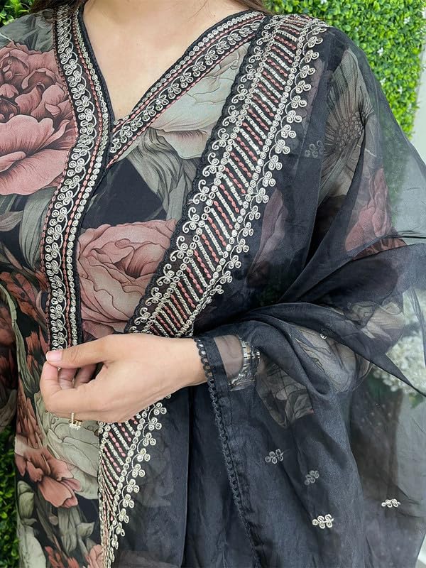Sun Fashion and lifestyle Organza Printed Neck Style kurta with crepe linning .crepe stitched pant.organza embroidery with border work.patry causual wear