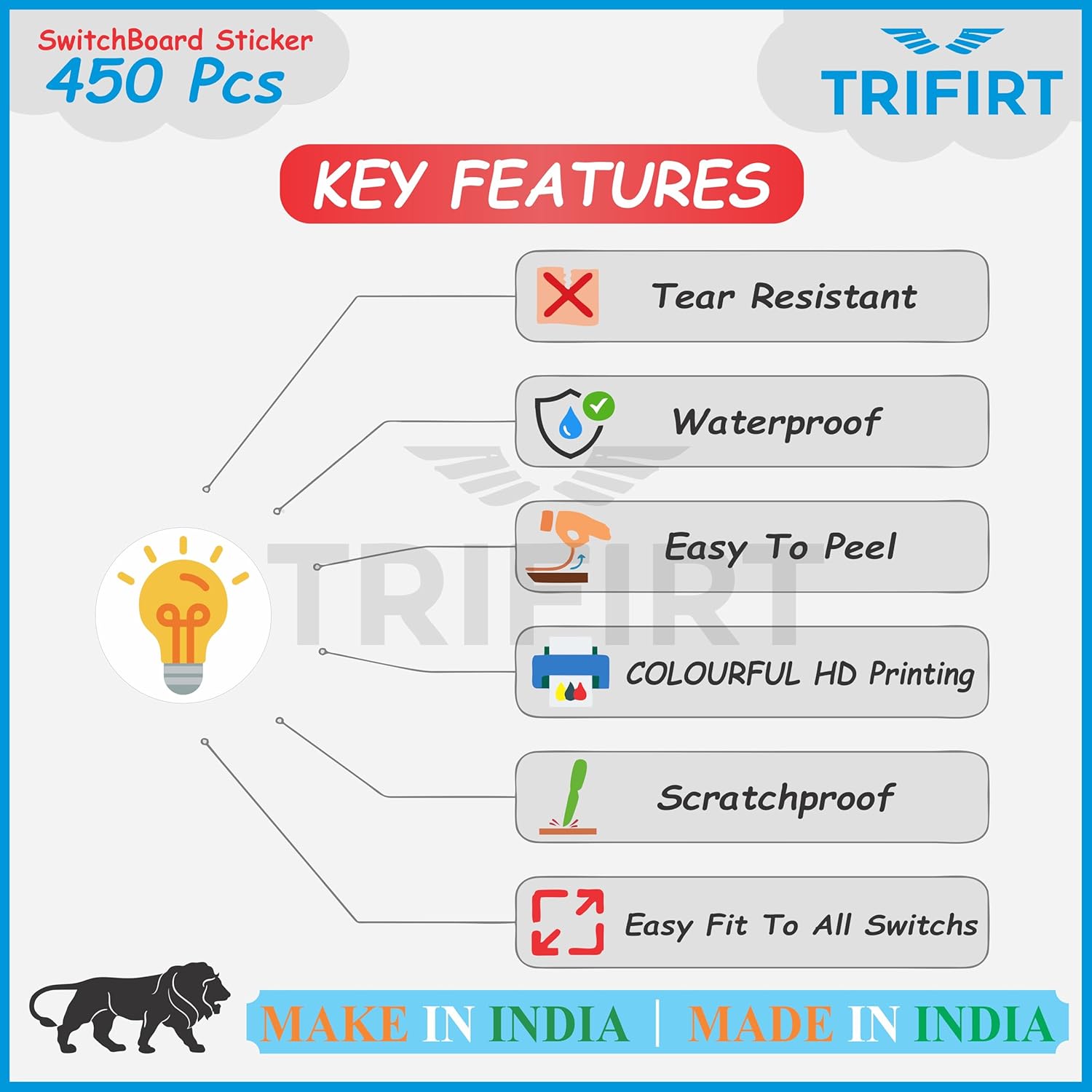 Trifirt Transparent Switch Stickers for White Switchboard for Home Office Electric Board Appliances for Home Fan Tubelight Lamp Stickers 36 Design 450 Pcs (Colourful)