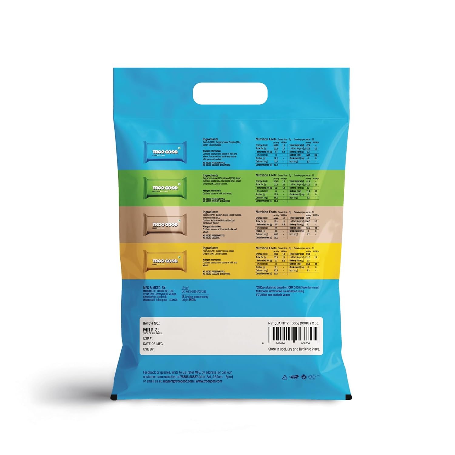 Packer : MFORMILLET FOODS PRIVATE LIMITED, MFORMILLET FOODS PRIVATE LIMITED Plot No 15 AND 16, H No 1-98/9/3/46 AND 47, Silicon Valley, Madhapur, HYDERABAD, Hyderabad, Telangana, 500081